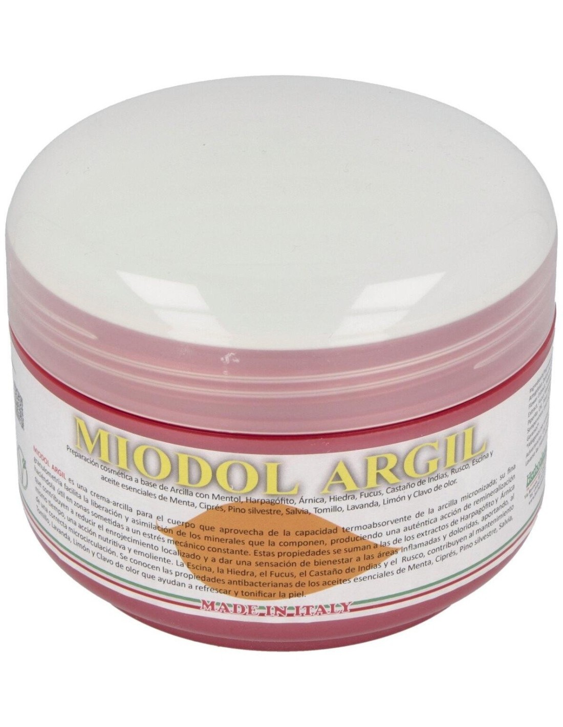 Miodol Argil de Herboplanet es una crema-arcilla para el cuerpo que aprovecha de la capacidad termoabsorvente de la arcilla micronizada; su fina granulometría facilita la liberación y asimilación de los minerales que la componen, produciendo una auténtica acción de remineralización haciéndola útil en zonas sometidas a un estrés mecánico constante.Estas propiedades se suman a las de los extractos de Harpagófito y Árnica que contribuyen a dar una sensación de bienestar a las áreas inflamadas y doloridas, aportando, al mismo tiempo, una acción nutritiva y emoliente. La Hiedra, el Fucus, el Castaño de Indias y el Rusco, contribuyen al mantenimiento de una correcta microcirculación. Se conocen las propiedades antibacterianas de los aceites esenciales de Menta, Ciprés, Pino silvestre, Salvia, Tomillo, Lavanda y Limón que ayudan a refrescar y tonificar la piel.Esta recomendada en casos de esguinces, Hematomas, Subluxaciones, Traumas en general, Inflamación músculo-tendón, Contracturas, Distensiones musculares, Reducción del ácido láctico, Cervicalgia, Fatiga post-deportivo.Ingredientes (INCI):Aqua, Solum Fullonum, Glycerin Peg-100 Stearate, Glyceryl Stearate, Propylene Glycol, Prunus Amygdalus Dulcis Oil, Glycerin, Hydrogenated Polyisobutene, Alcohol, Harpagophytum procumbens Root Extract, Arnica montana Flower Extract, Hilantus Annuus Seed Oil, Cetearyl Alcohol, Ricinus Communis seed Oil, Cetyl Alcohol, Kaolin, Hedera helix Leaf Extract, Fucus vesiculosus Extract, Aesculus hippocastanum Seed Extract, Ruscus aculeatus Extract, Menthol, Tocopherol, Mentha piperita Oil, Pinus sylvestris Leaf Oil, Salvia officinalis Oil, Thymus vulgaris Oil, Lavandula angustifolia Herb Oil, Cupressus sempervirens Leaf Oil, Citrus Medica limonum Peel Oil, Phenoxyethanol, Capryl Glycol, Eugenol*, Limonene*, Linalool*, Citral*, Geraniol*. (*) Alérgenos de los aceites esenciales.Modo de empleo:Aplicar una capa de producto de 2-3 mm sobre el área a tratar y cubrir con una película transparente. Dejar que actúe durante al menos 4 horas. Para optimizar la acción del producto, recomendamos aplicarlo antes de acostarse y dejarlo que actúe toda la noche. Por la mañana, lavar la parte afectada con agua templada.Presentación:Envase de 500 ml.