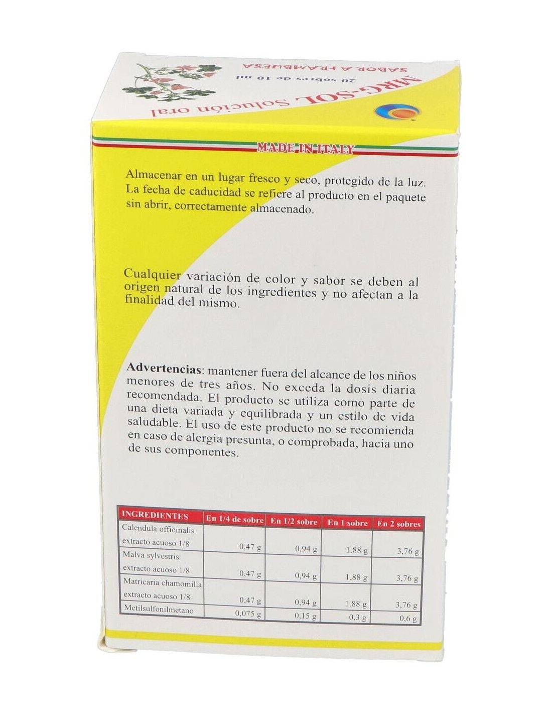 Presentación:Envase de 20 sobres de 10 ml sabor frambuesa.