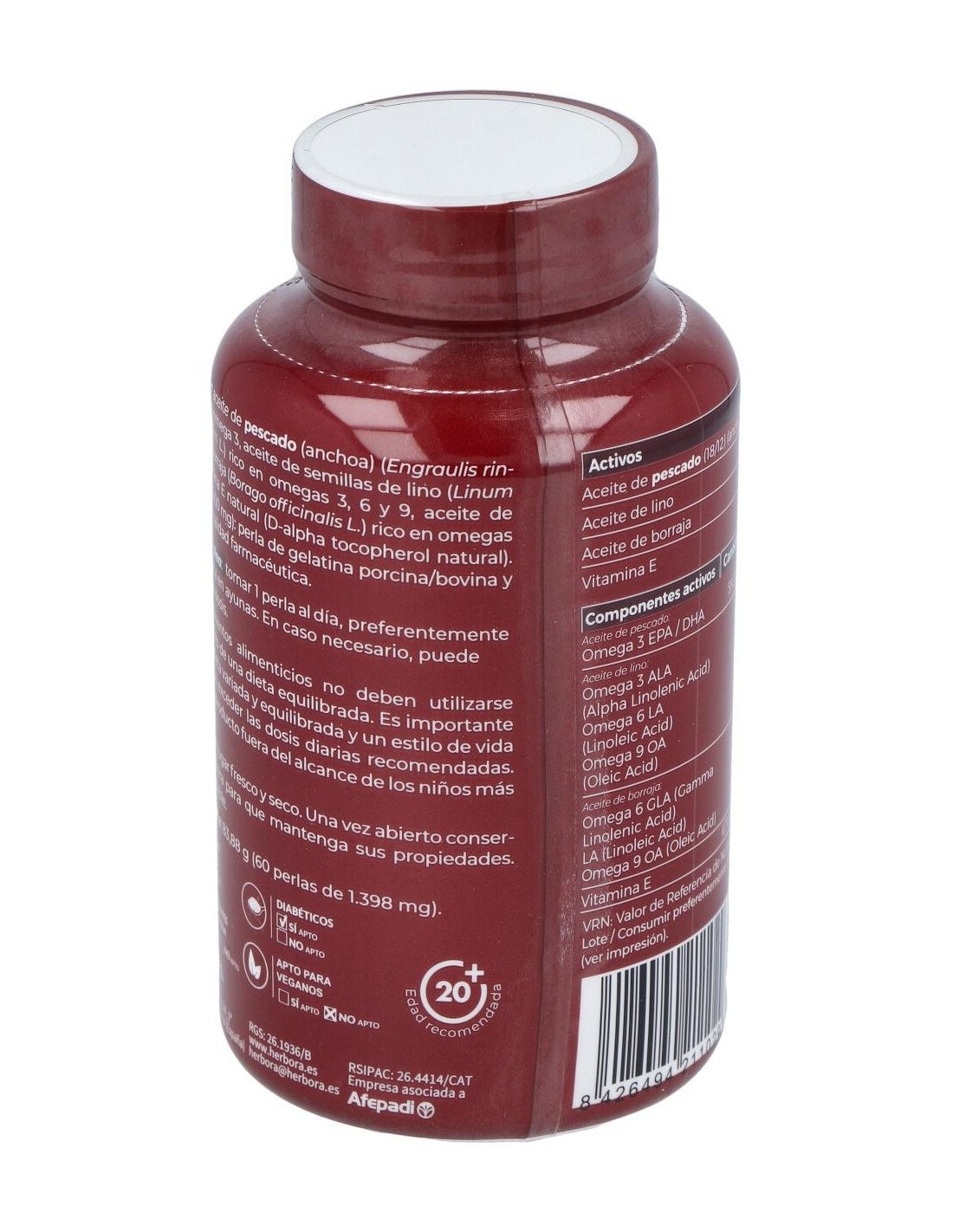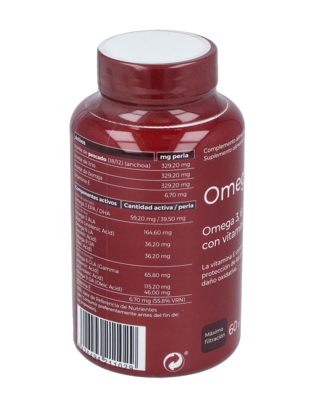 329,20 mg de aceite de pescado salvaje (59,20 mg de EPA y 39,50 mg DHA).