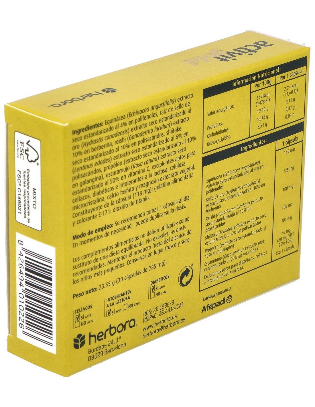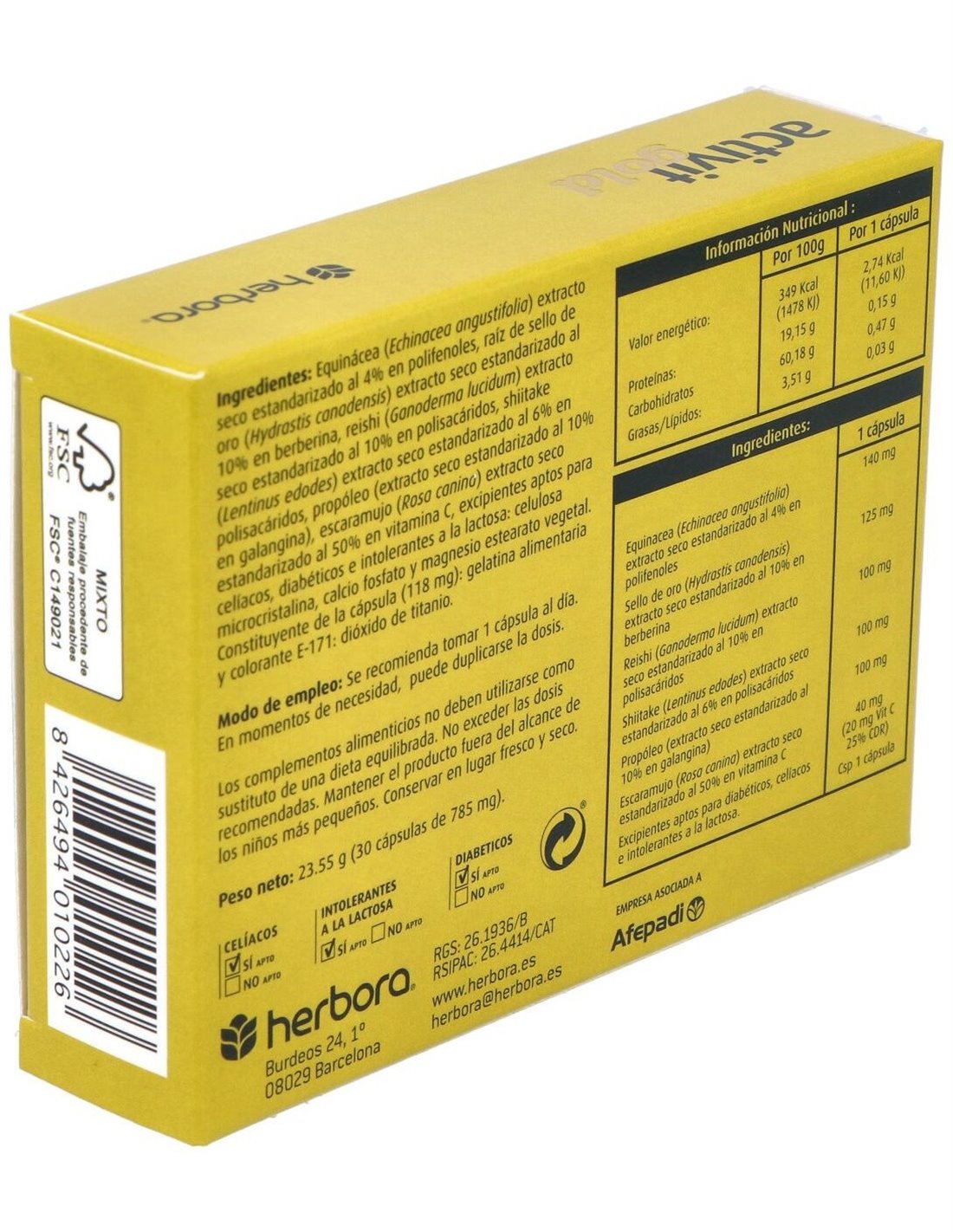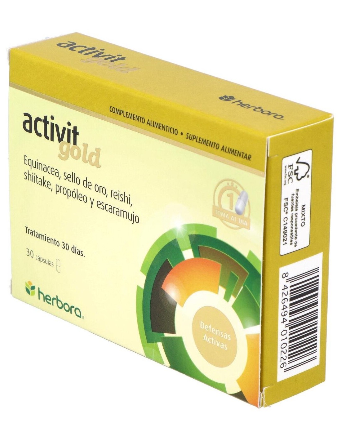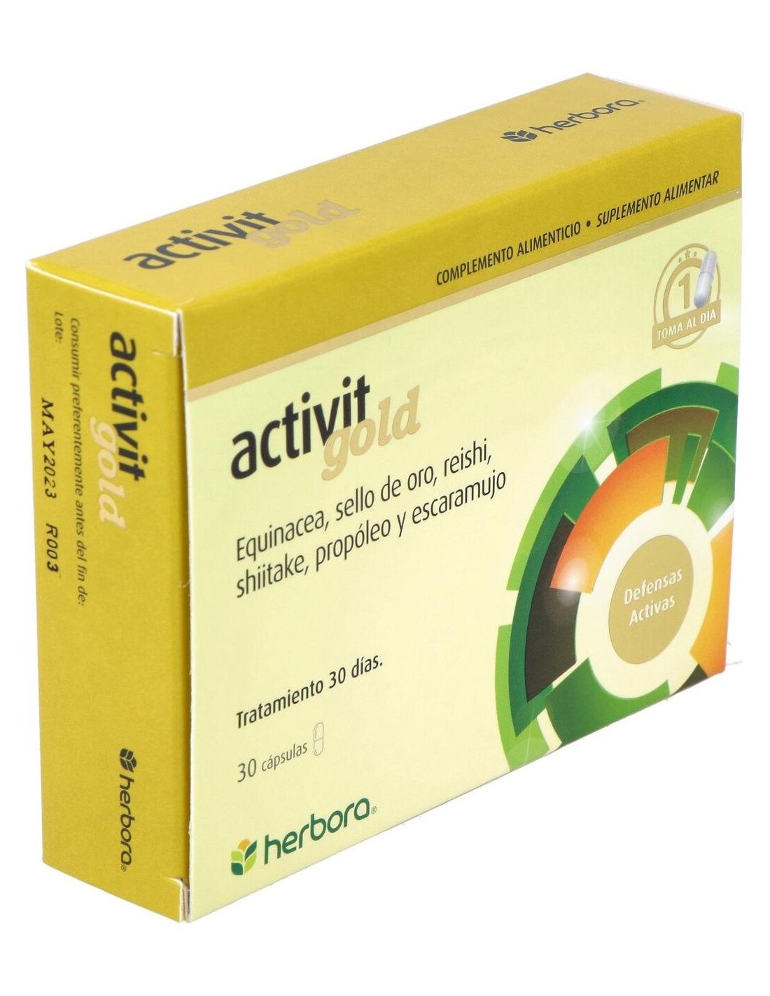 El organismo está expuesto continuamente a distintos tipos de agentes que pueden dar lugar a enfermedades, más o menos graves, como pueden ser virus, hongos y bacterias. Por eso es importante fortalecer las defensas con una alimentación sana y equilibrada, pero debido al ritmo de vida al que estamos sometidos hoy en día, a veces esto no es suficiente y es necesario aumentar las defensas como complementos para hacer frente a la enfermedades y estados que hagan disminuir el sistema defensivo. Por otro lado, las alergias son actualmente un motivo importante de pérdida de vitalidad y estados de deterioro físico y mental, que hacen disminuir la actividad y la capacidad de seguir una vida normal. Herbora ha desarrollado Activit Gold, que ayudará a fortalecer las defensas y a disminuir los efectos negativos por las alergias. Principios activos: