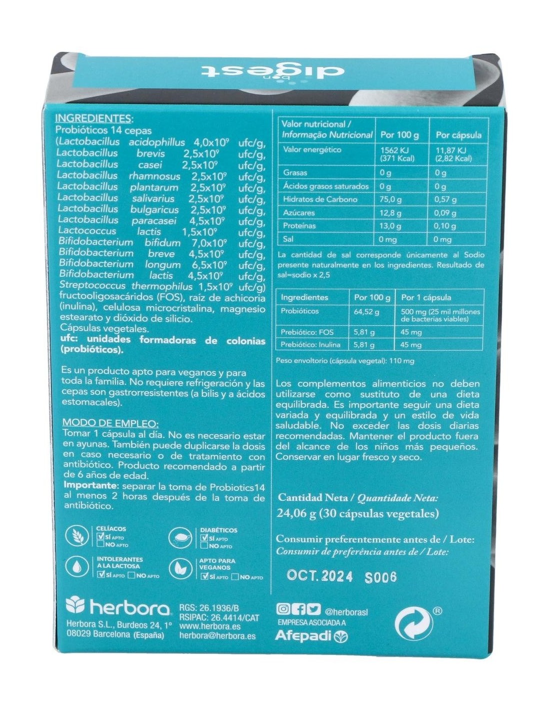 - Elaborado bajo estrictos controles de calidad para asegurar la estabilidad y viabilidad de las bacterias durante su vida útil.