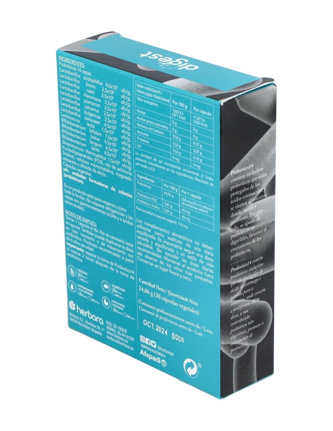 Probiotics 14 de Herbora es un suplemento probiótico diseñado para personas que buscan apoyar su salud digestiva. Ofrece una fórmula con 14 cepas bacterianas que contribuyen al equilibrio natural del microbioma intestinal.