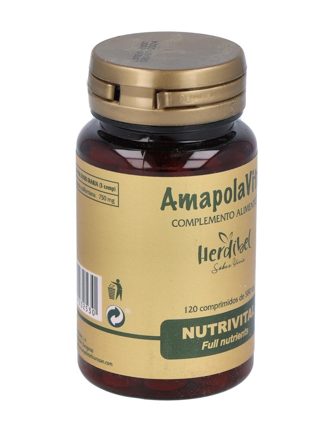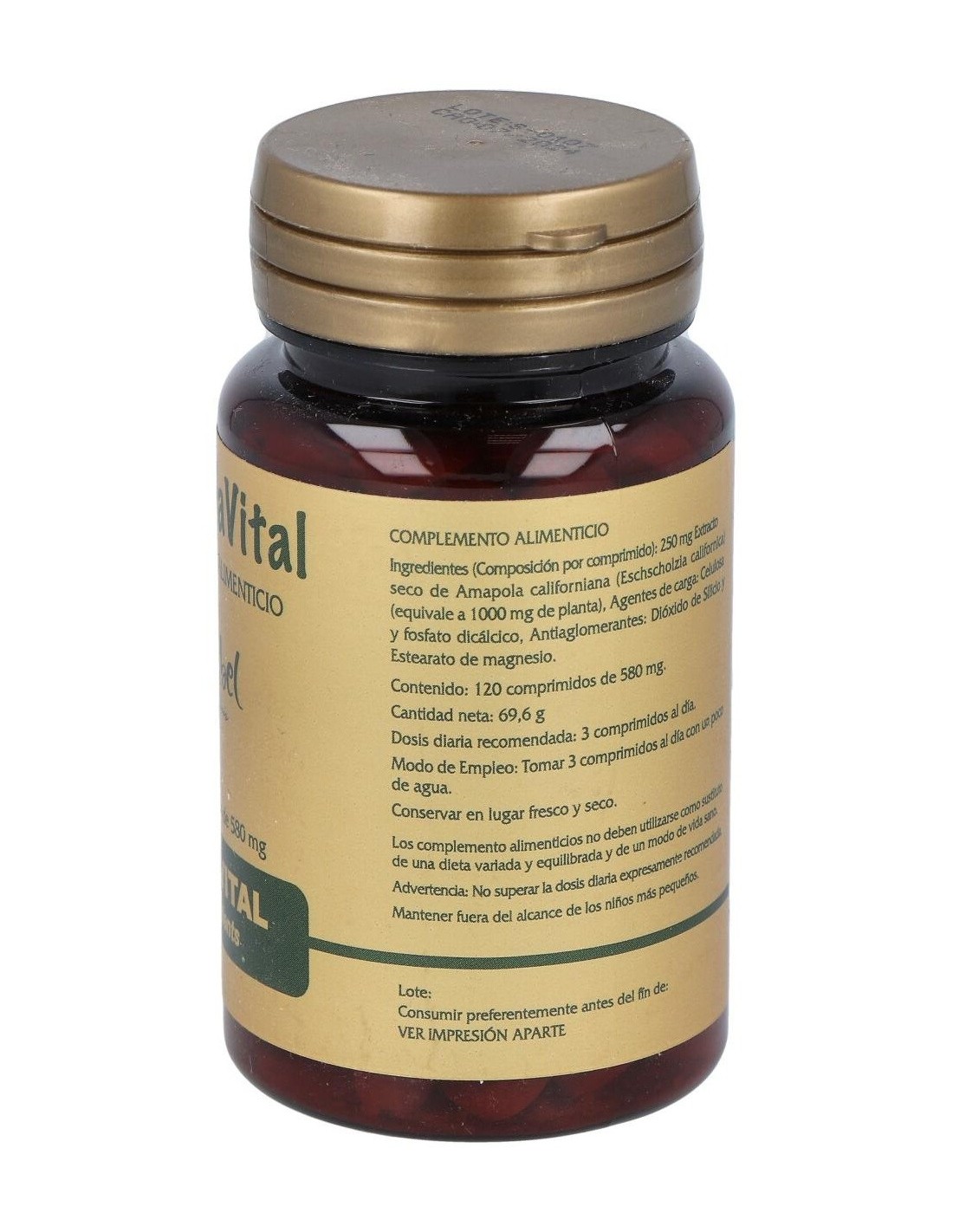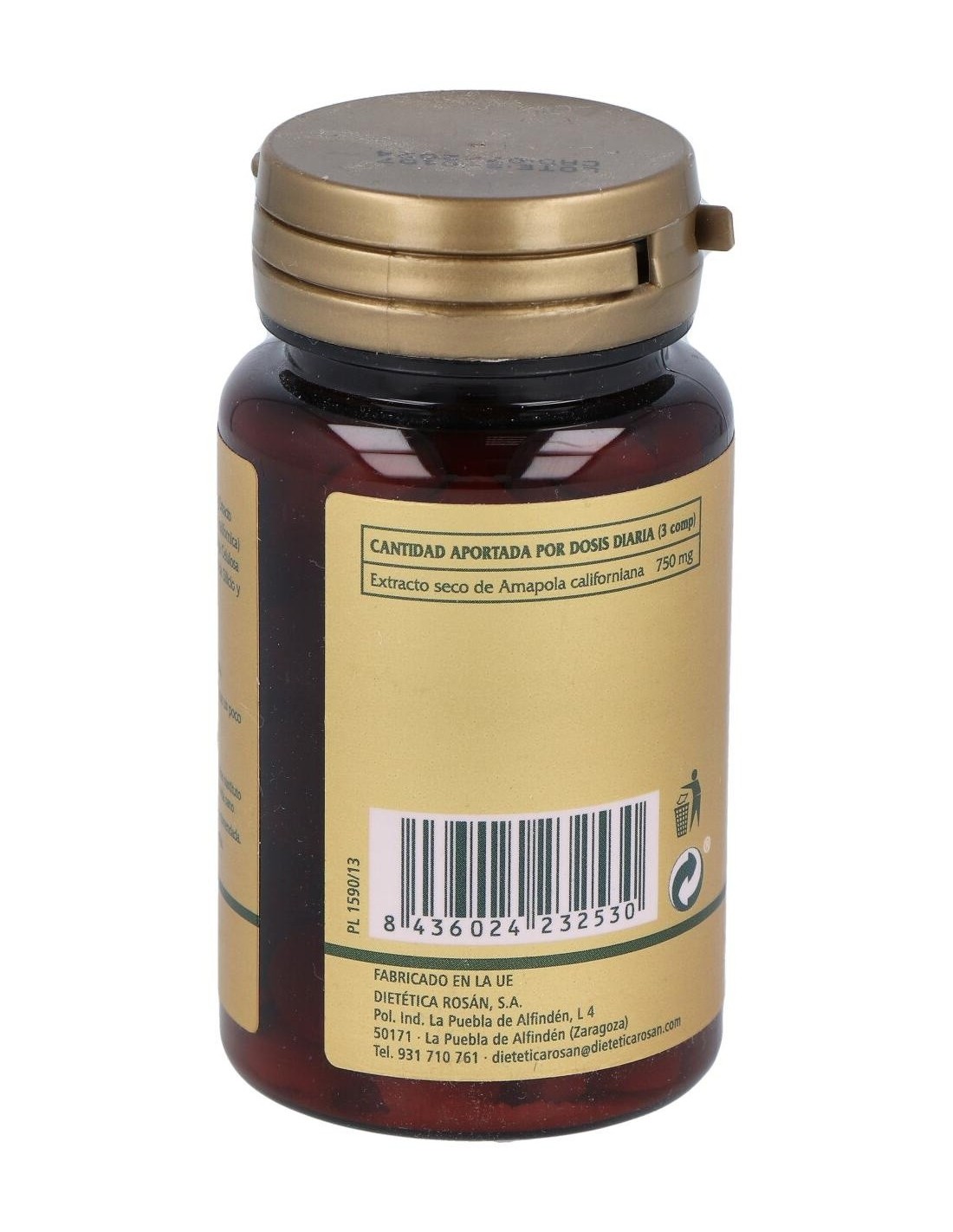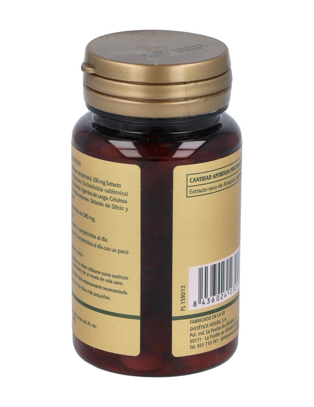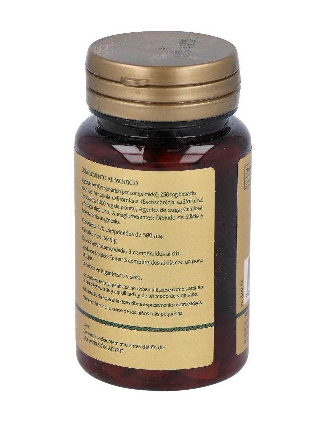 750 mg Extracto seco de Amapola Californiana. (Eschscholzia californica) (250mg de extracto seco equivalen a 1000 mg de planta).