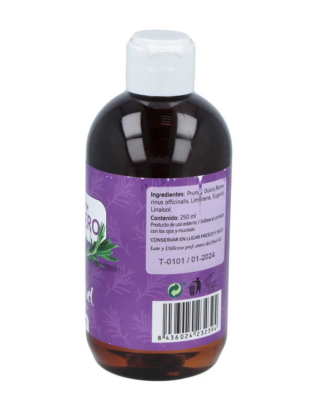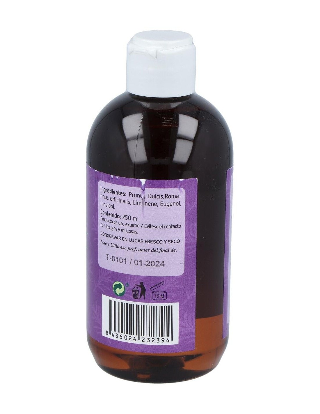 100% aceite de almendras dulces, 100% aceite esencial de romero.