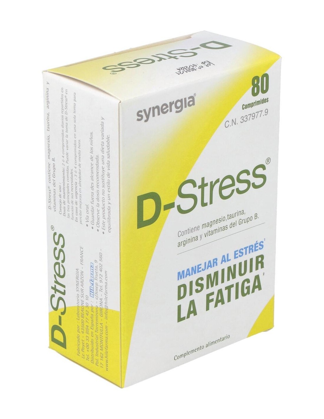 Hilefarma D-Stress 80comp es un complemento alimenticio que te ayudará a controlar situaciones pasajeras de nervios y estrés gracias a una fórmula nutritiva y equilibrada.