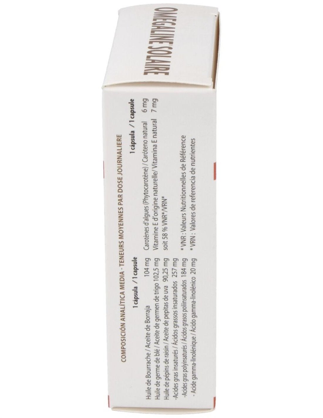 Las cápsulas de Omegaline Solar están elaboradas con ingredientes cuidadosamente seleccionados para asegurar su estabilidad y absorción. Su presentación en envase compacto facilita su almacenamiento y transporte, adaptándose a rutinas diarias variadas.