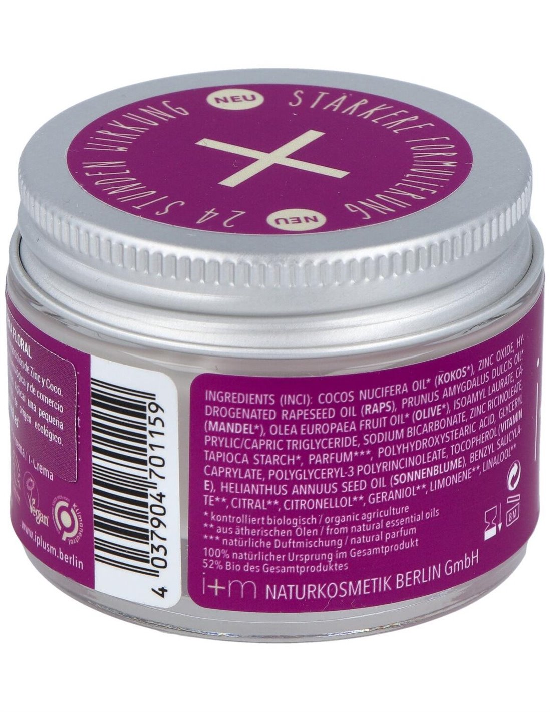 Desodorante en crema con agradable aroma floral, elaborado a base de aceites de coco, almendras, oliva y girasol procedentes de la agricultura ecológica, almidón de tapioca y óxido de zinc, que contribuyen a absorber la humedad, y eliminar las bacterias que producen el mal olor.