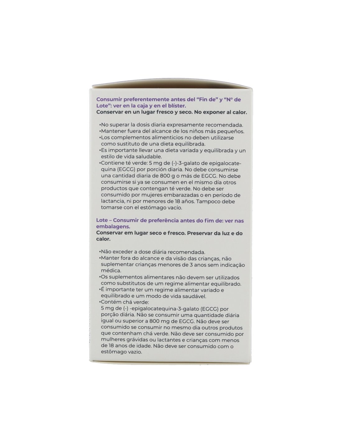 SinetrolX pur: extractos de pomelo (Citrus paradisi), de naranja dulce (Citrus sinensis L.), de naranja roja (Citrus sinensis L.) y de guaraná (Paullinia cupana), agentes de carga celulosa microcristalina, agentes de carga: fosfato dicálcico, fosfato tricálcico ; L-tartrato de L-Carnitina, Svetol: extracto de café verde (Coffea canephora); extracto de hoja de té verde (Camellia sinensis), antiaglomerante: sales de magnesio de ácidos grasos; agentes de recubrimiento: hidroxipropilmetilcelulosa, celulosa microcristalina, ácido esteárico; antiaglomerante: dióxido de silicio; extracto de fruta de pimienta negro (Piper nigrum); citrato de zinc, picolinato de cromo.