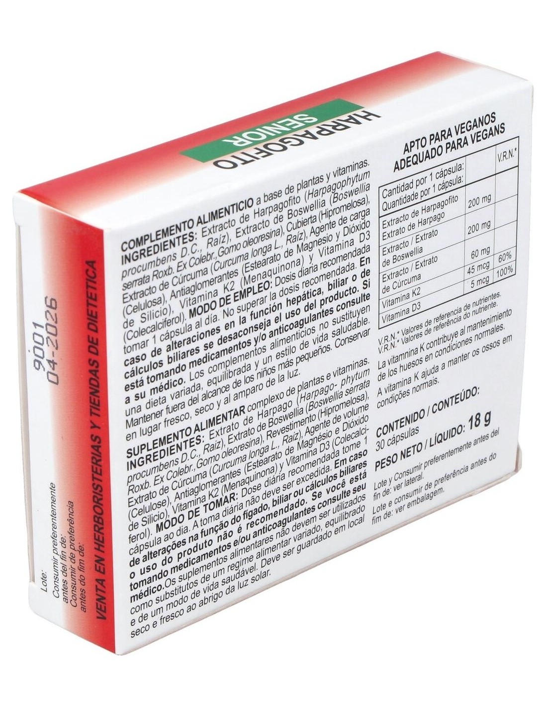 Las cápsulas de Harpagofito Complex están elaboradas con ingredientes seleccionados para mantener su calidad y estabilidad. Su formato permite una administración cómoda, ideal para quienes prefieren suplementos en esta presentación.