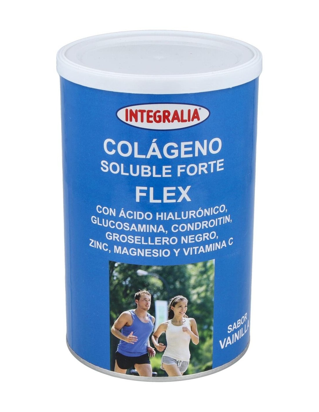 El Colageno Soluble Forte Flex Sabor Vainilla 300Gr. de Integralia es un suplemento para personas activas que busca apoyar la salud articular mediante una fórmula soluble de colágeno de fácil absorción.