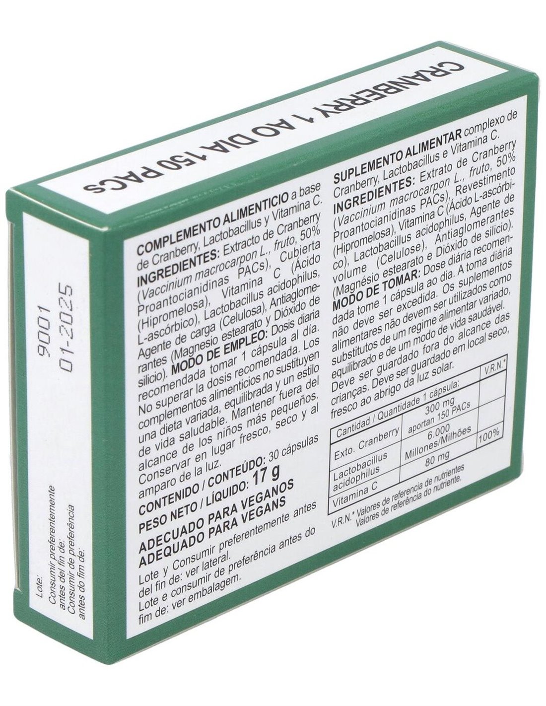 - Formulado con extracto de arándano rojo, reconocido por su composición natural de compuestos antioxidantes.