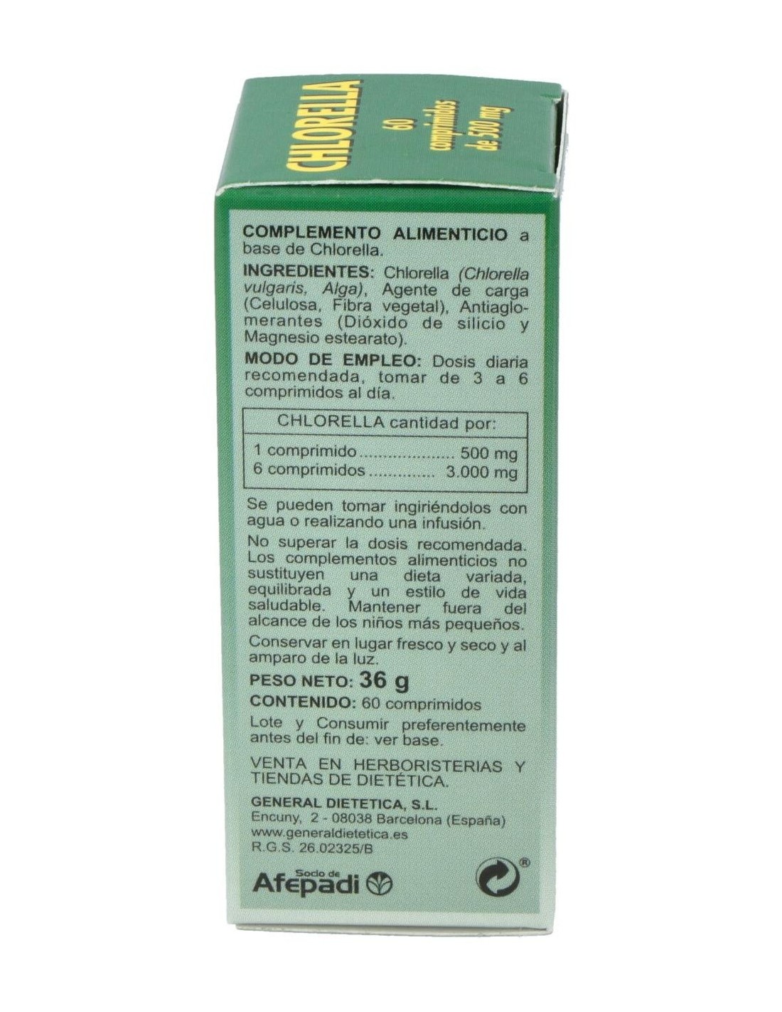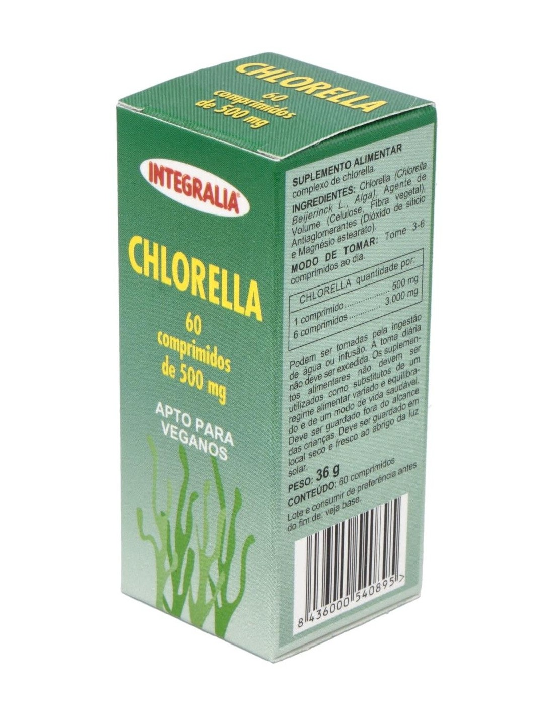 - Cada comprimido contiene 500 mg de chlorella, una microalga conocida por su perfil nutricional.