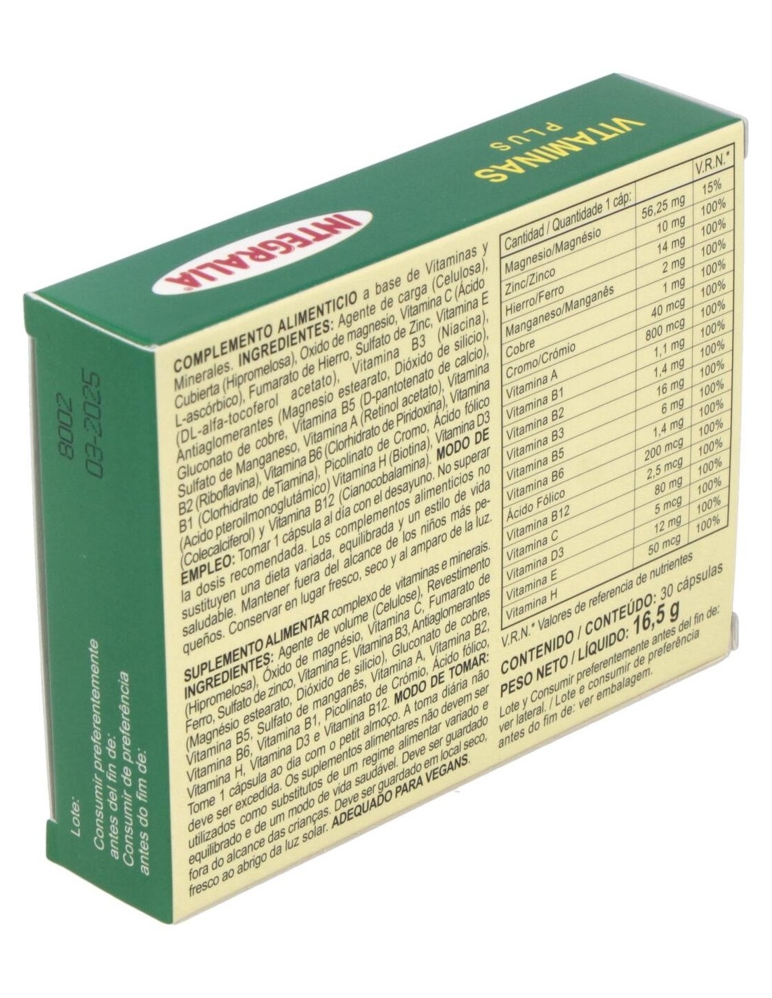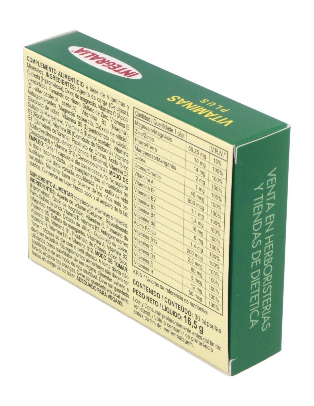 Vitaminas Plus 30Cap. de Integralia es un suplemento diseñado para personas que buscan complementar su dieta diaria con una fórmula equilibrada de vitaminas y minerales esenciales. Es adecuado para quienes desean mantener un aporte nutricional constante en su rutina habitual.