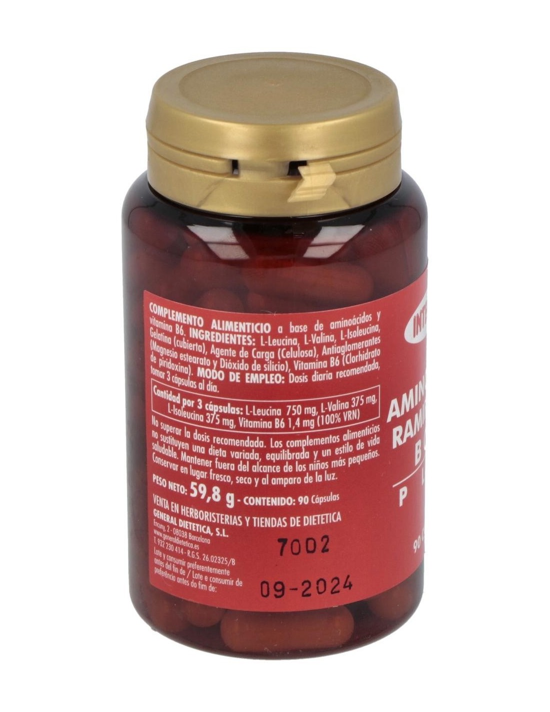 El Aminoacidos Ramificados Bcaa Plus 90Cap. de Integralia es un suplemento para deportistas que apoya la recuperación muscular y el mantenimiento de la masa magra gracias a su fórmula concentrada de aminoácidos esenciales.