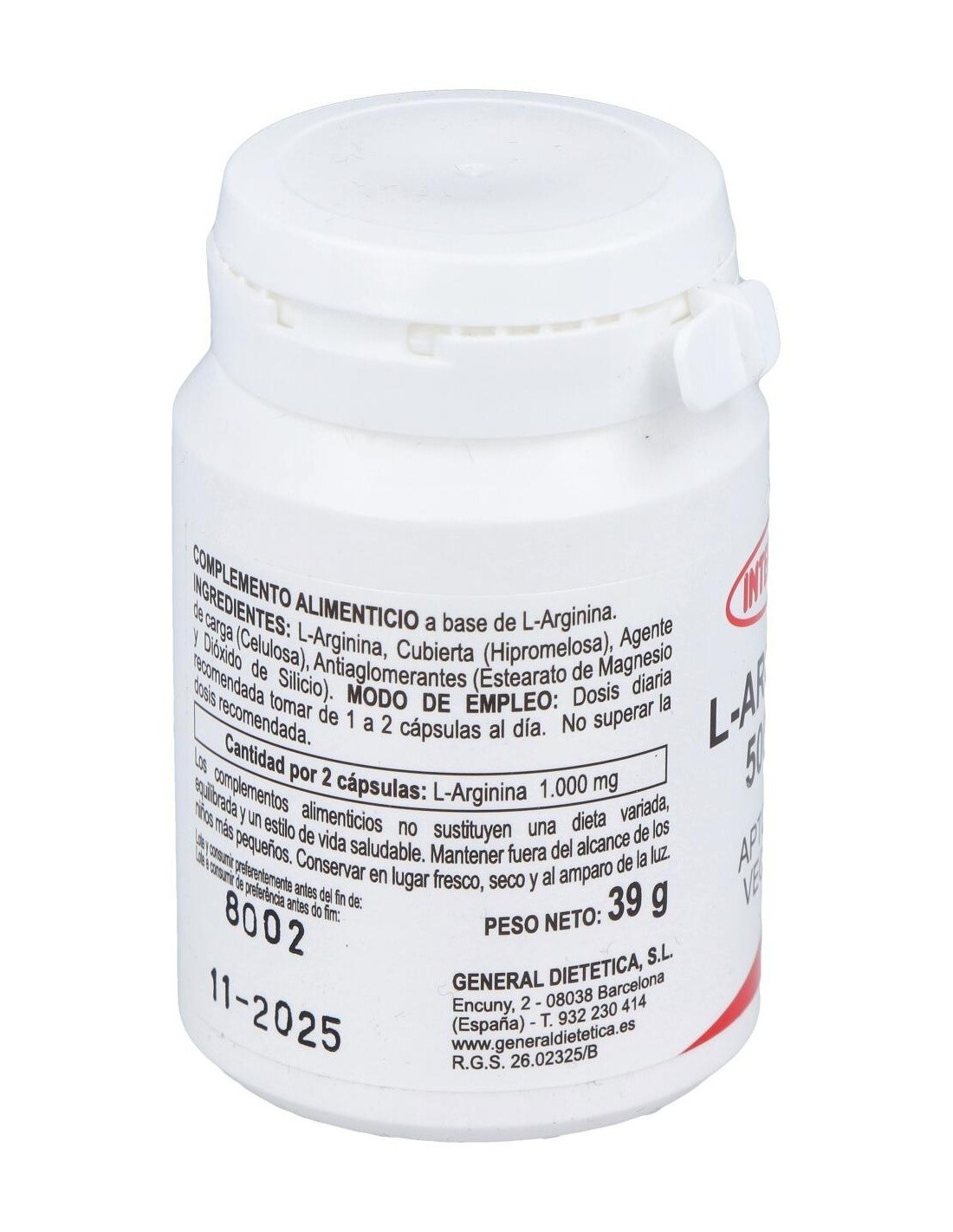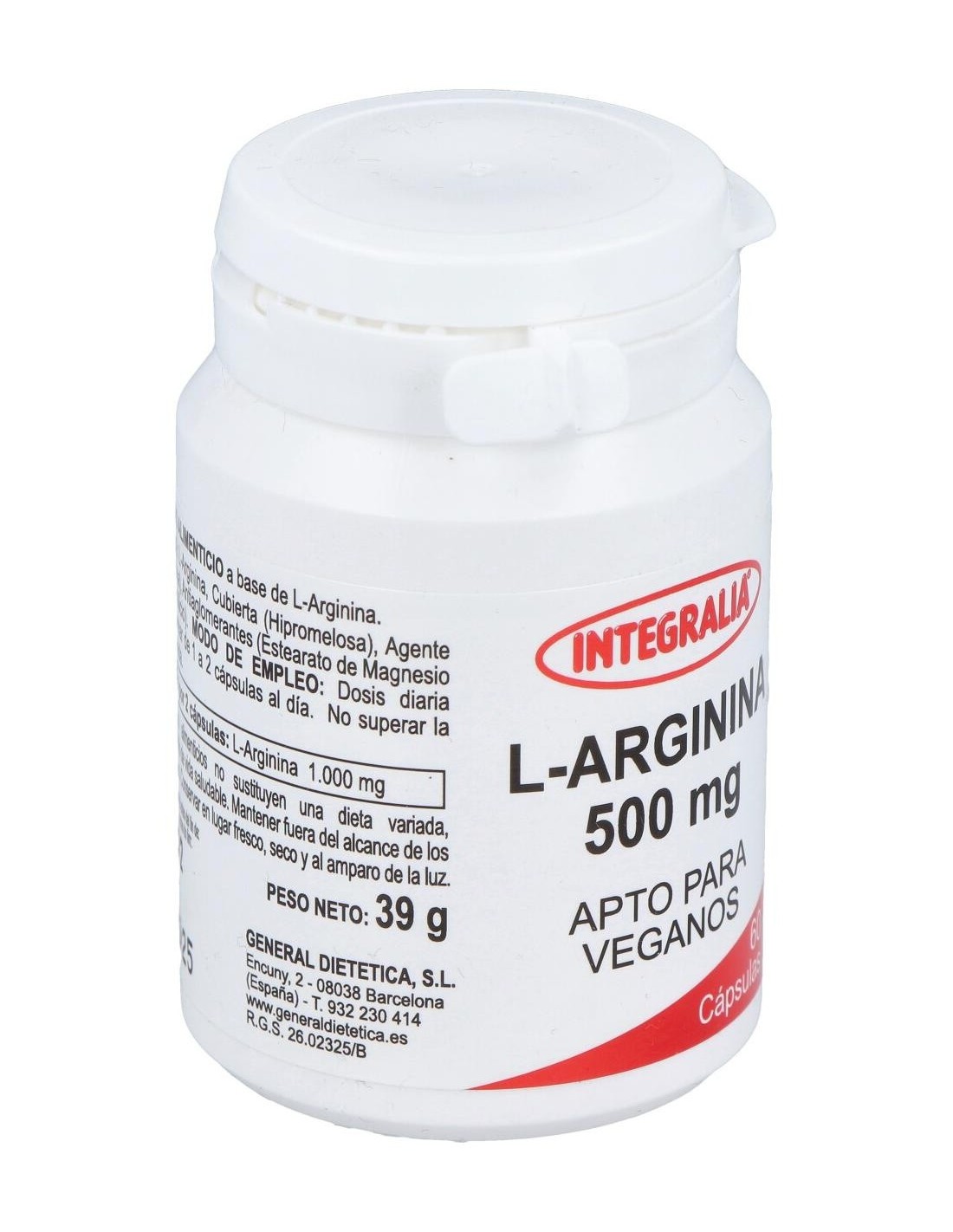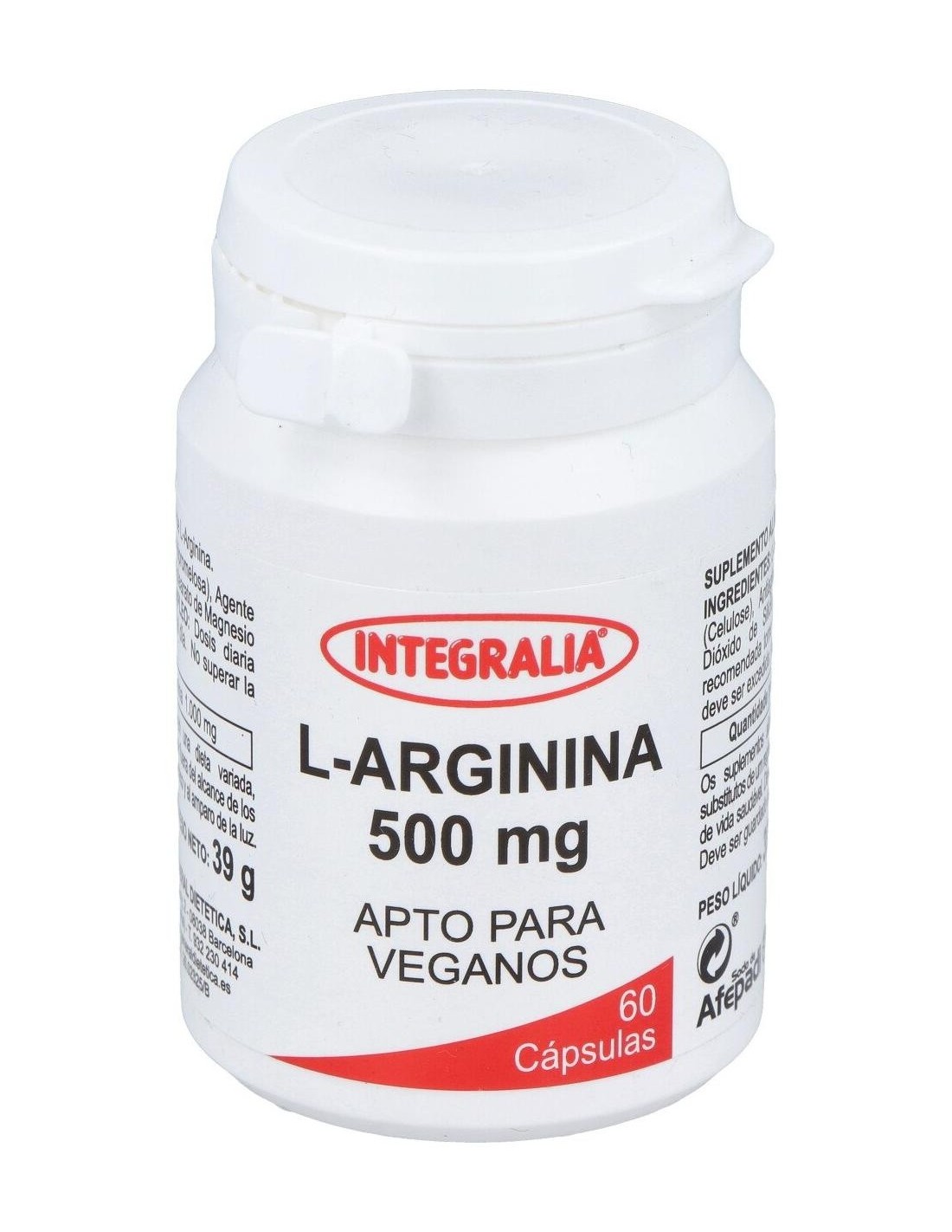 L-Arginina 500Mg. 60Cap. de Integralia es un suplemento para adultos que apoya la función vascular y la producción de óxido nítrico, contribuyendo al bienestar general mediante una fórmula de dosis controlada.