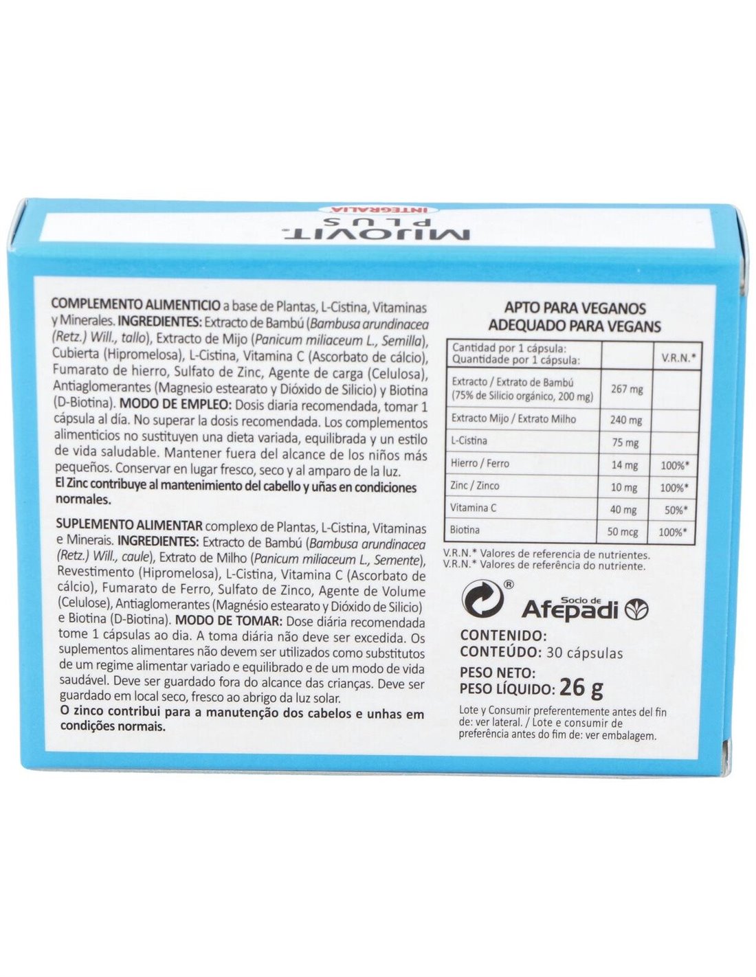Mijovit Plus 30Cap. de Integralia ofrece una formulación equilibrada que apoya el bienestar general, integrándose de manera práctica en el día a día.