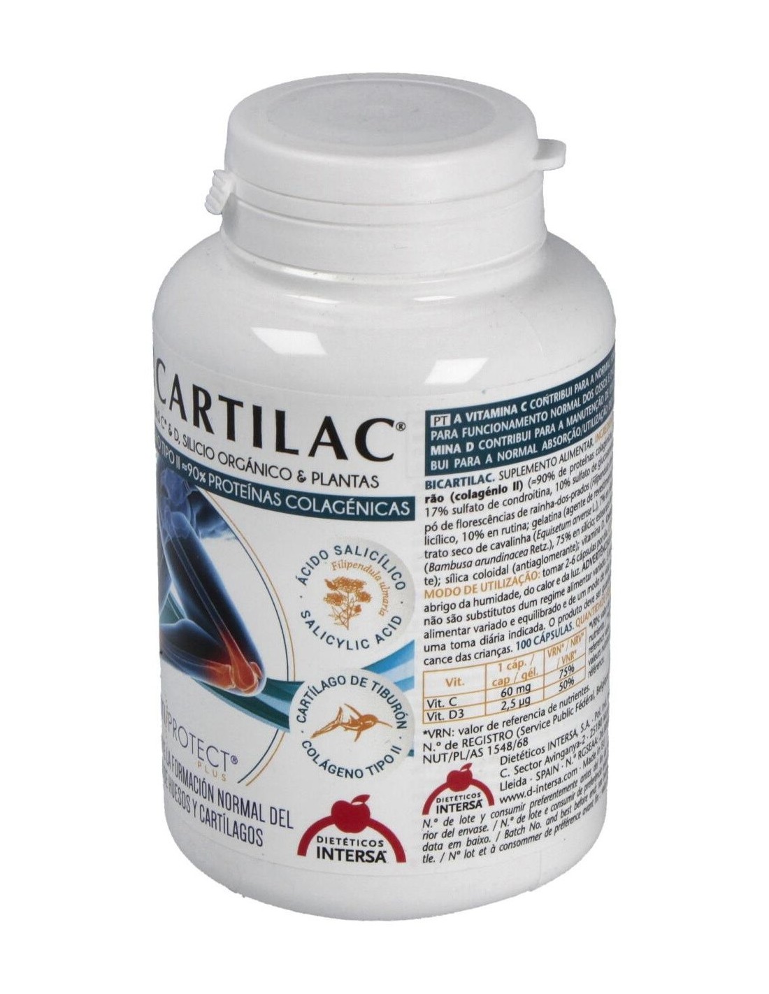 Bicartilac está compuesto por cartílago de tiburón el cual es uno de los remedios naturales más eficaces para prevenir y tratar enfermedades cómo la artritis, el reuma, la osteoartrosis, osteoporosis y diversos estados inflamatorios.Aporta proteínas, calcio, colágeno y unas sustancias llamadas glucosaminoglicanos, que al ser incorporadas en nuestra dieta actúan en las membranas de nuestras articulaciones protegiéndolas del deterioro. Otro de sus compuestos es la Reina de los Prados con acción analgésica y antiinflamatoria.La vitamina C contribuye a la formación normal del colágeno para el funcionamiento normal de los huesos y los cartílagos y la vitamina D contribuye al mantenimiento de los huesos en condiciones normales y a la utilización normal del calcio y del fósforo.Propiedades:
