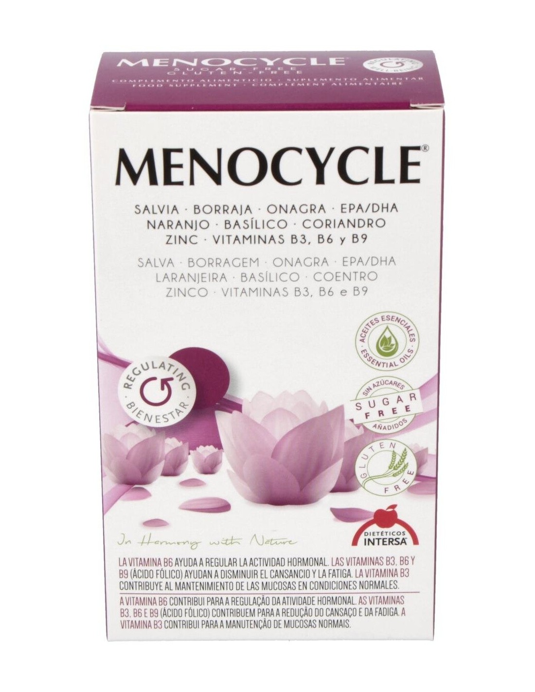 Ingredientes:aceite de borraja (Borago officinalis L.)(150 mg), aceite de onagra (Oenothera biennis L.)(150 mg), aceite de pescado (18/12 EPA/DHA)(140 mg), gelatina-glicerina (agente de recubrimiento); cera de abejas (emulgente); aceite de soja (emulgente); zinc (sulfato de zinc)(3,3 mg), vitamina B3,(5,3 mg), vitamina E (5 mg), aceite esencial de salvia (Salvia officinalis L.)(2,2 mg), aceite esencial de amaro (Salvia sclarea L.)(2,2 mg), aceite esencial de naranjo-hojas (Citrus aurantium L. var. amara)(2,2 mg), aceite esencial de basílico (Ocimum basilicum L.)(2,2 mg), aceite esencial de semillas de coriandro (Coriandrum sativum L.)(2,2 mg), vitamina B6 (0,46 mg), color óxido negro; color óxido rojo; vitamina B9 (66,7 mcg).Modo de empleo:Tomar 3 perlas al día, una antes de cada comida.Presentación:Envase de 60 perlas.Recomendaciones y advertencias:Apto para veganos. No contiene azúcares ni gluten. Contiene derivados de pescado y de soja.