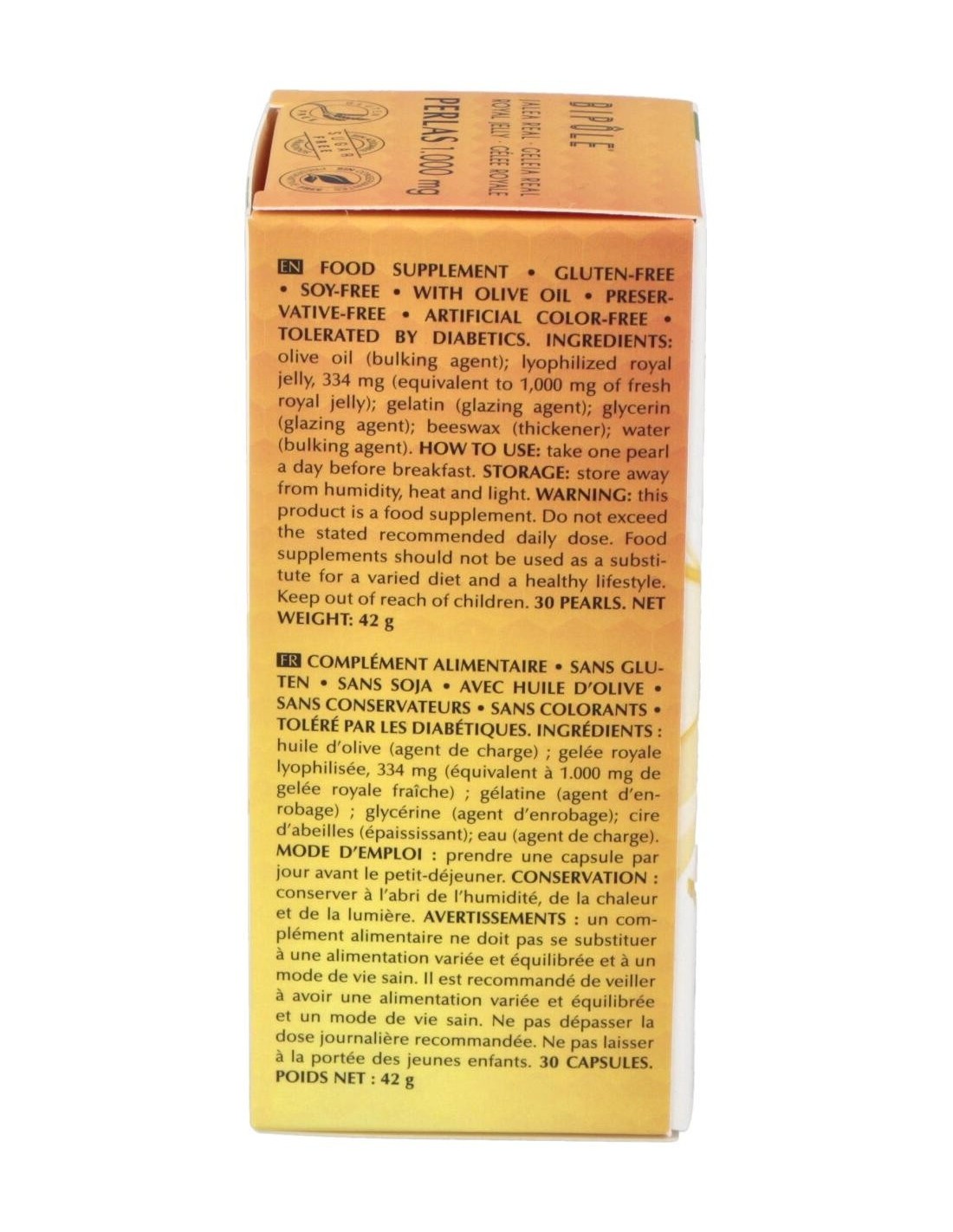 Alimento dietético que ayuda a nutrir y aportar energía al cuerpo. Compuesto por una elaborada fórmula, rica en vitaminas, minerales y oligoelementos. Contiene vitaminas B1, B2, B3, B5, B6, B7, B8, B9 y B12, además de vitaminas A, C, D y E. Aporta calcio, cobre, hierro, fósforo, potasio, silicio y azufre. También tiene en su fracción lipídica diferentes ácidos grasos esenciales, entre ellos el 10-DHA (ácido 10-hidroxidecenoico). No contiene conservantes, colorantes, estabilizantes y las materias primas utilizadas han superado estrictos controles de calidad. Los complementos alimenticios no son sustitutos de una dieta equilibrada y un modo de vida sano. Se recomienda no sobrepasar la cantidad diaria recomendada. Tolerado por diabéticos.