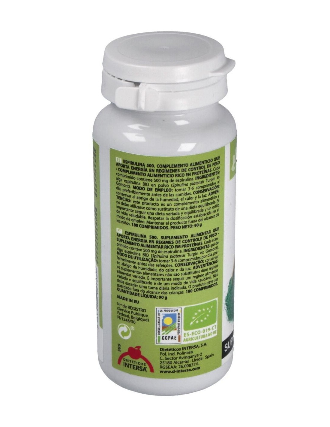 Espirulina (500 Mg.) 180 Comprimidos Bio de Intersa
