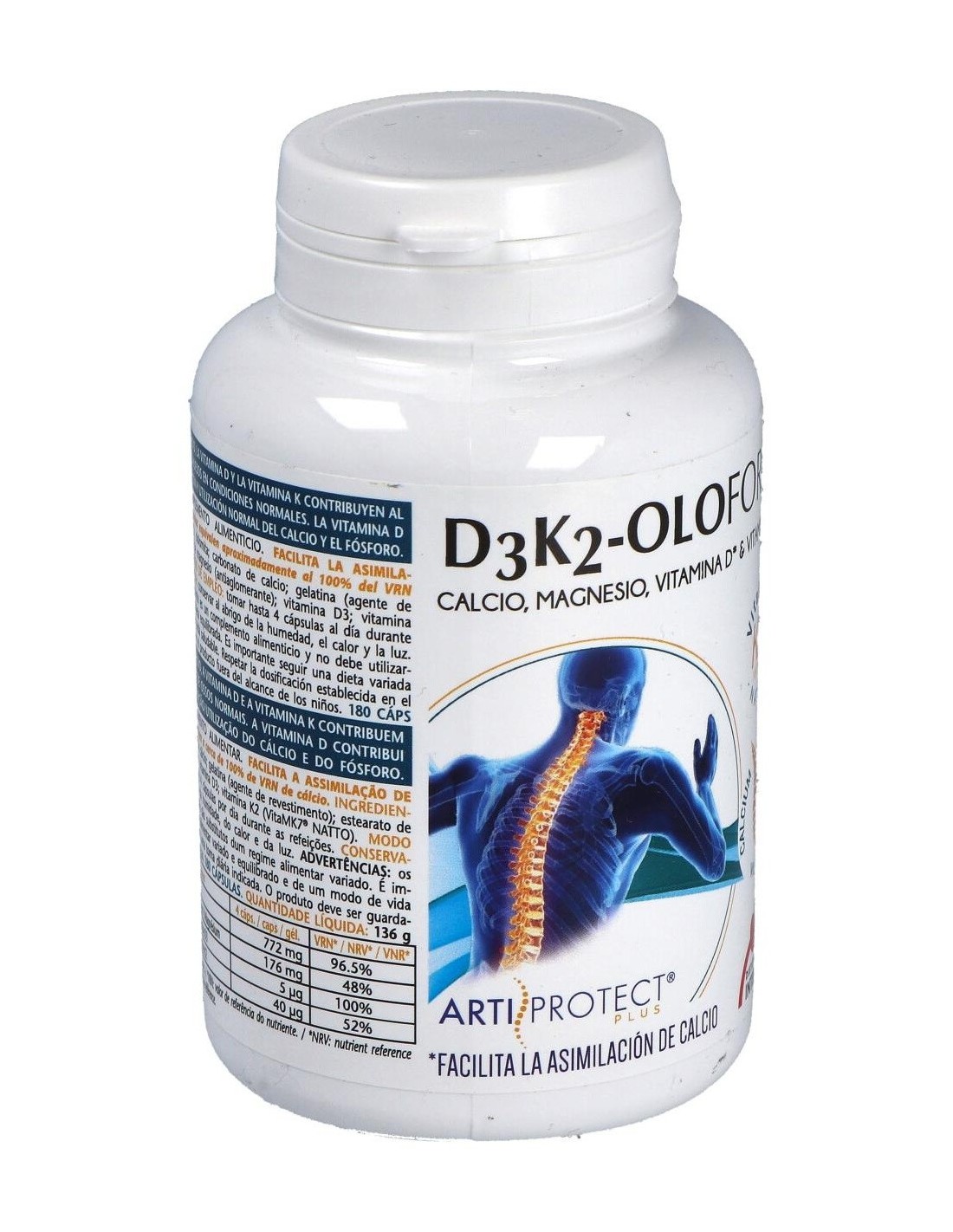 Este producto es un complemento nutricional para la corrección del déficit de calcio, por una dieta inadecuada o por aumento de la demanda (lactantes, ancianos). Ideal para descalcificación, osteoporosis, osteomalacia, dolores musculares y articulares asociados a descalcificación, hipocalcemia, déficit de vitamina D3 y déficit de vitamina K.Ingredientes: