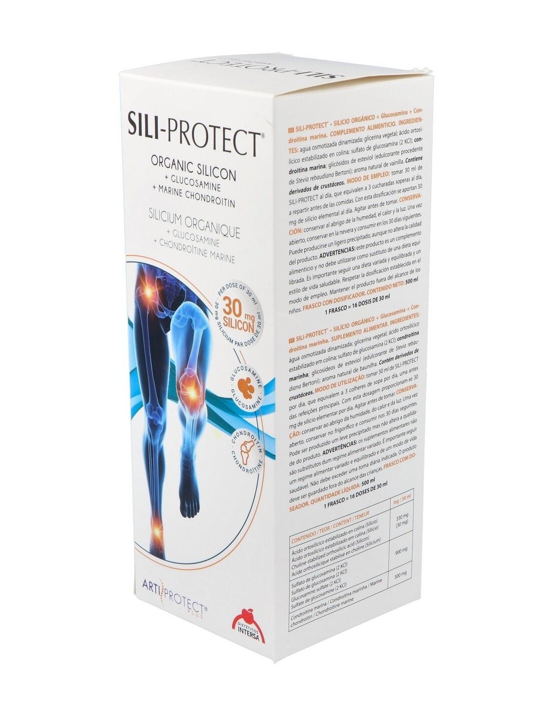 Sili-Protect jarabe es un complemento nutricional que aporta al cartílago articular silicio orgánico, azufre, glucosamina y condroitina marina, actúan