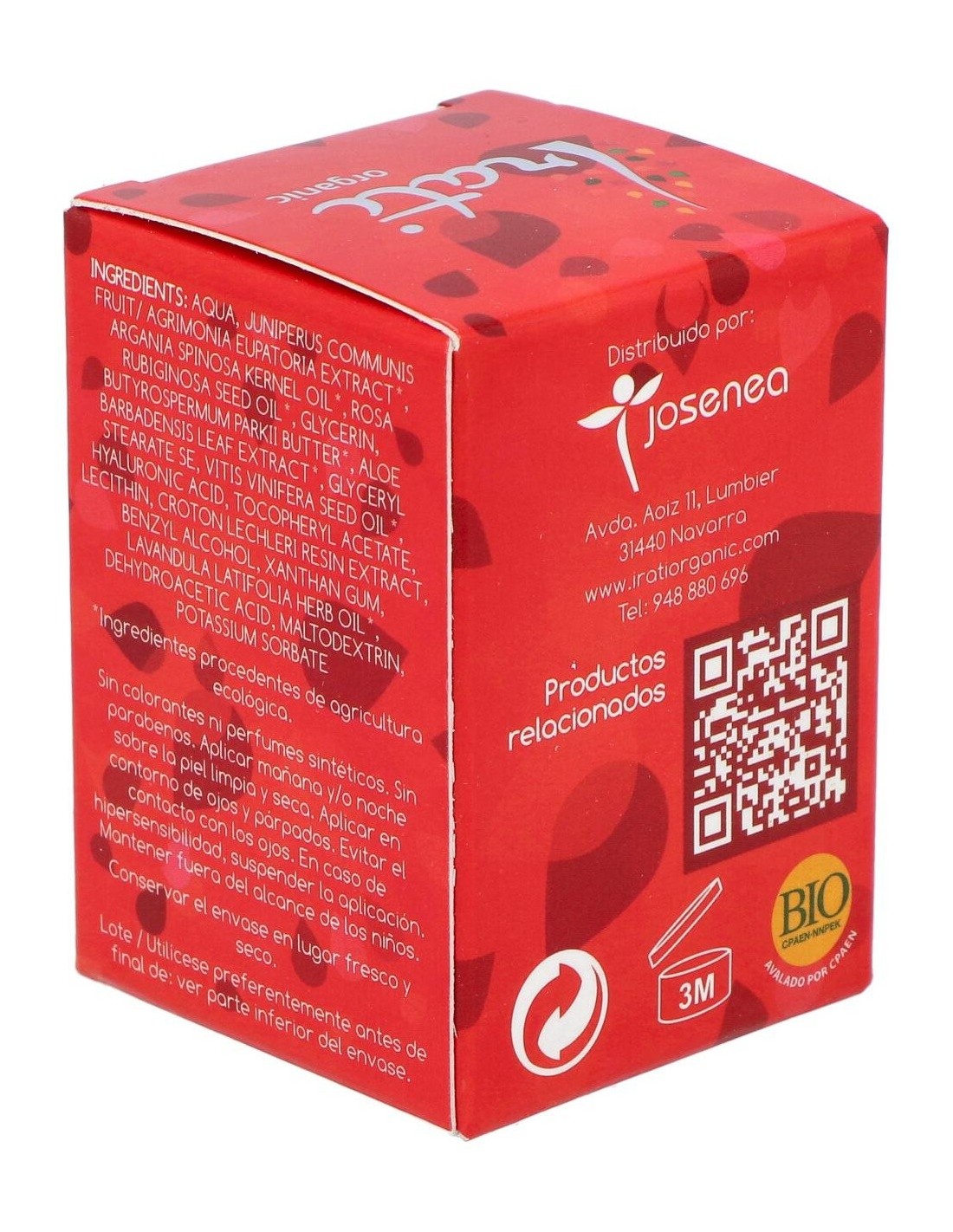 Este contorno de ojos utiliza ingredientes de origen natural certificados por Irati Organic, garantizando un producto con enfoque en la pureza y el respeto por la piel. Su diseño en envase compacto permite una dosificación controlada, facilitando su aplicación precisa en la zona periocular.