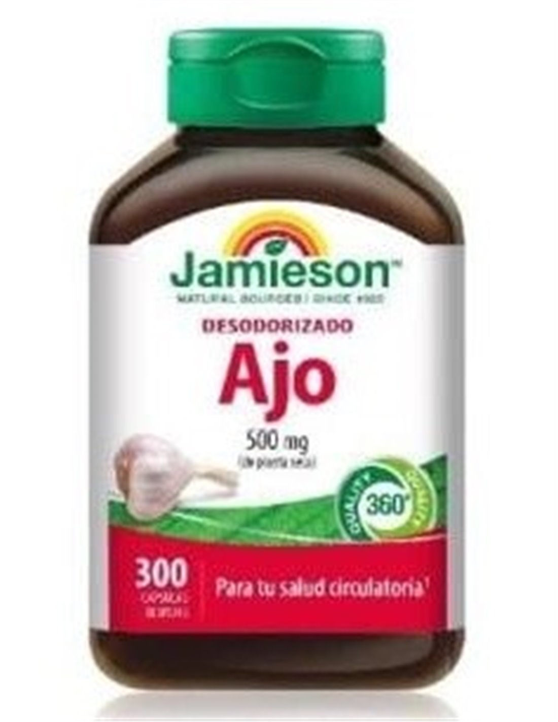 El ajo contribuye a un normal mantenimiento cardiovascular, dando apoyo, por ejemplo, a una normal presión arterial. \ \ El producto Ajo desodorizado, de la marca Jamieson, es un suplemento alimenticio a base de ajo desodorizado, presentado en cápsulas de 500 mg y envase de 300 unidades. El ajo es un ingrediente muy conocido en la cocina, pero también ha sido utilizado como una hierba medicinal durante miles de años en todo el mundo. Con la fórmula desodorizada de Jamieson, se puede disfrutar de todos los beneficios del ajo sin el regusto ni el olor característico.\ Propiedades del Ajo desodorizado: es una excelente fuente de compuestos sulfurados que ayudan a mantener el sistema inmunológico normal y, con ello, los niveles de lípidos en sangre. Además, el ajo puede ayudar a la digestión y a la normal función cardiovascular.\ En particular, el ajo ayuda a mantener la normal presión arterial y da apoyo al tracto respiratorio superior. En resumen, el Ajo desodorizado Jamieson, es una excelente opción para aquellos que buscan apoyar su sistema inmunológico, y ayudar a un mantenimiento cardiovascular normal.
