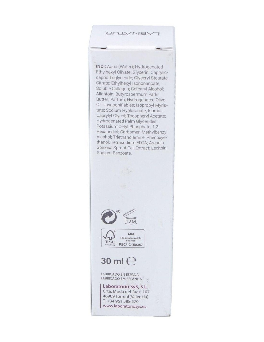 INCI: Aqua, Hydrogenated Ethylhexyl Olivate, Glycerin, Caprylic/capric Triglyceride, Glyceryl Stearate Citrate, Ethylhexyl Isononanoate, Soluble Collagen, Cetearyl Alcohol, Allantoin, Butyrospermum Parkii Butter, Parfum, Phenoxyethanol, Hydrogenated Olive Oil Unsaponifiables, Isopropyl Myristate, Sodium Hyaluronate, Isomalt, Caprylyl Glycol, Tocopheryl Acetate, Hydrogenated Palm Glycerides, Potassium Cetyl Phosphate, 1,2-Hexanediol, Carbomer, Methylbenzyl Alcohol, Sodium Hydroxide, Tetrasodium EDTA, Argania Spinosa Sprout Cell Extract, Lecithin, Sodium Benzoate.