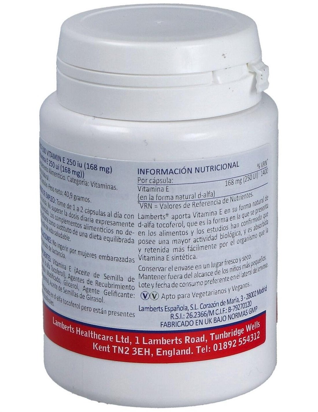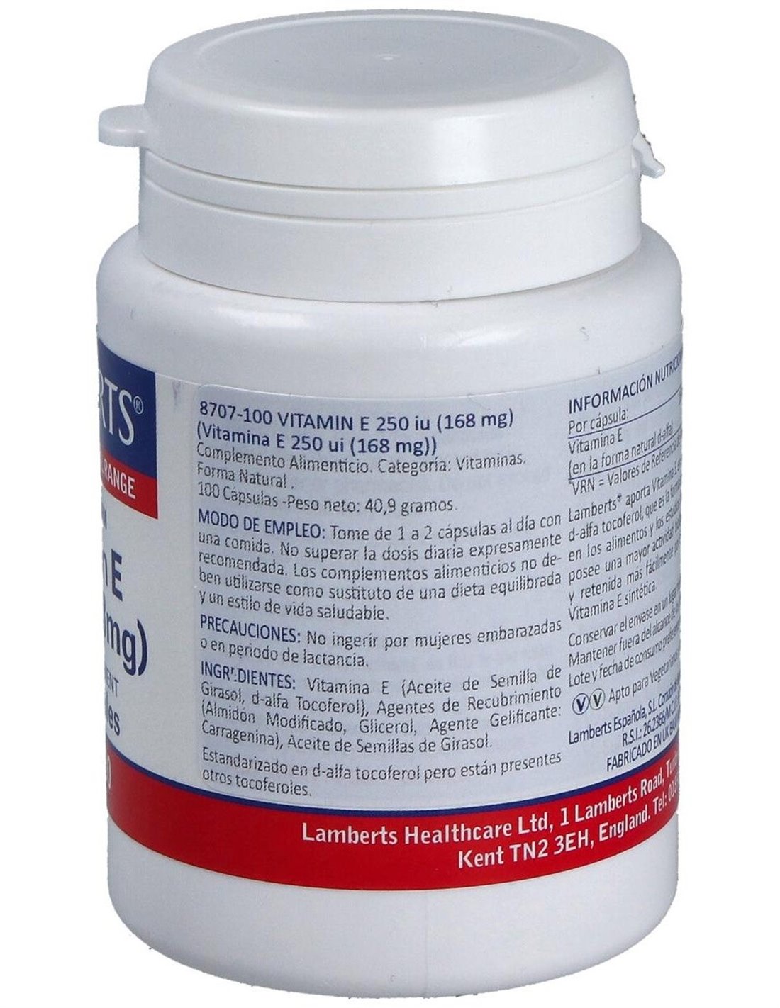 Vitamina E Natural 250 UI 100 Caps. de Lamberts