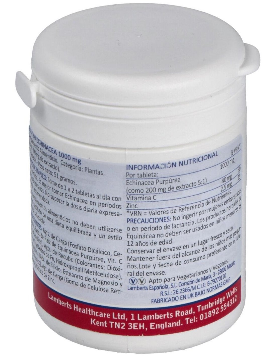 Equinácea 1000 mg con Vitamina C y Zinc 60 Tabs. de Lamberts