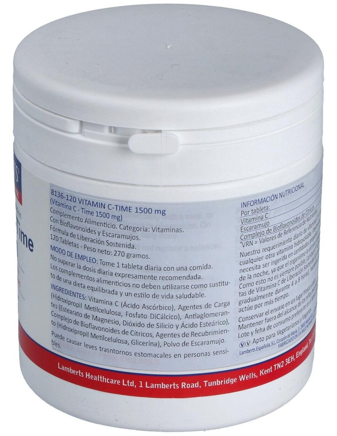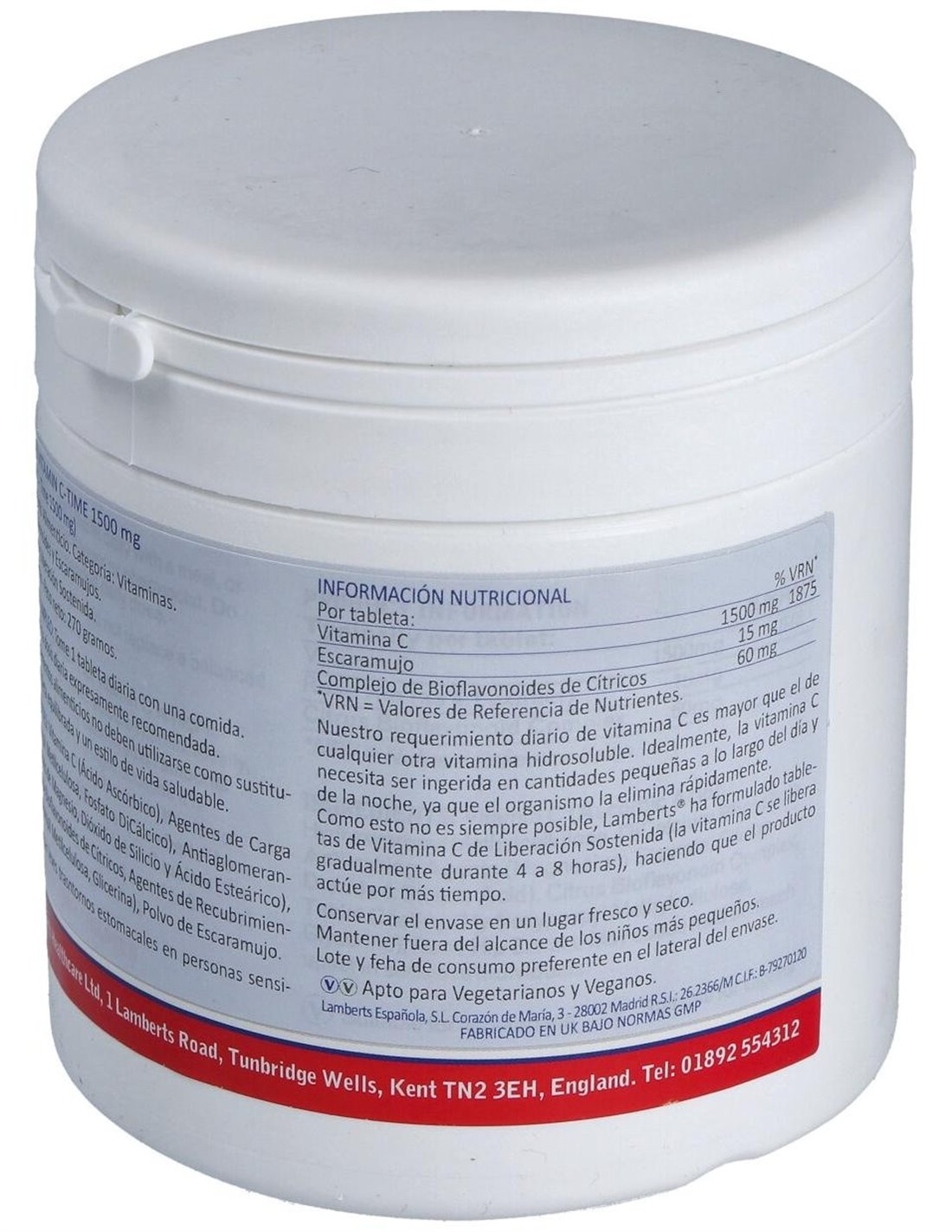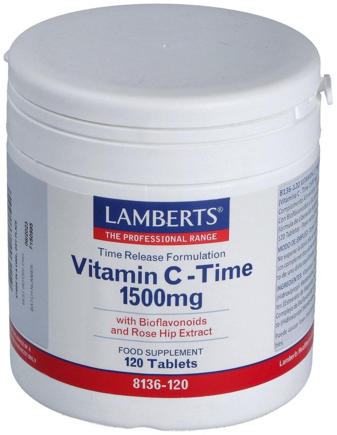 Vitamina C 1500 mg + Bioflavonoides Time Release 120 Tabs. de Lamberts
