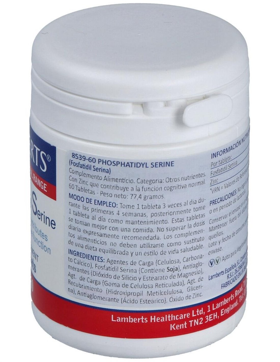 Fosfatidil Serina 100 mg con Zinc 5 mg 60 Tabs. de Lamberts