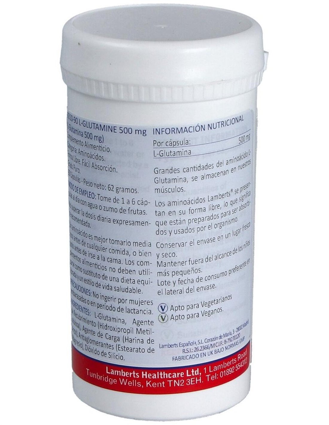 L-Glutamina 500 mg 90 Caps. de Lamberts