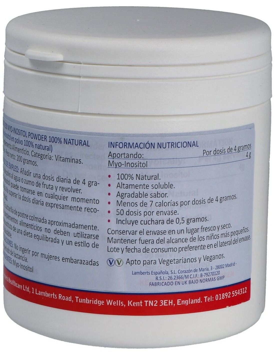 Myo Inositol en polvo 100% Natural 200 g de Lamberts