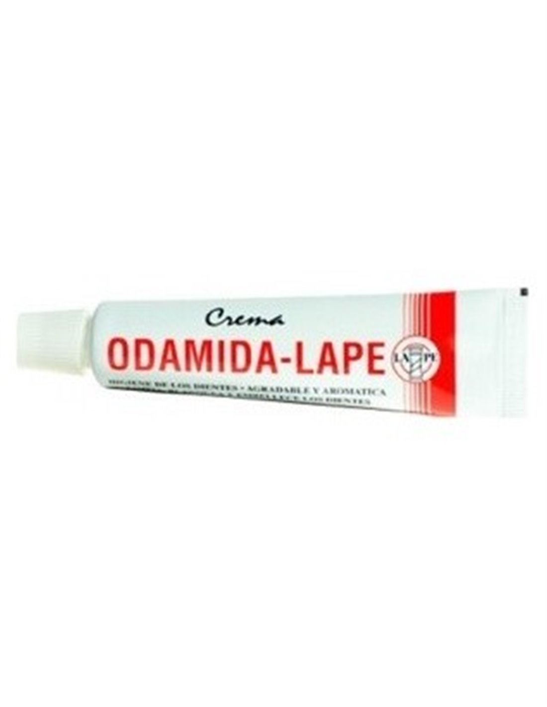 La crema Odamida-Lape es ideal para la limpieza y blanqueo de los dientes de una forma natural. En su composición se encuentran eficaces compuestos que con el cepillado frecuente de los dientes facilitan, tras el enjuague de la boca, la expulsión de los residuos alimenticios que se depositan en los dientes, dificultando la formación patológica de la placa microbiana. El Carbonato de Calcio que contiene, provoca un efecto blanqueante que sin dañar el esmalte de los dientes, arrastra los depósitos nocivos que se depositan e incrustan sobre éste, devolviéndole su blancura original. La acción refrescante producida por sustancias aromáticas como la Menta y el Mentol, favorecen la eliminación del mal aliento, dando a la boca una agradable sensación de bienestar.
