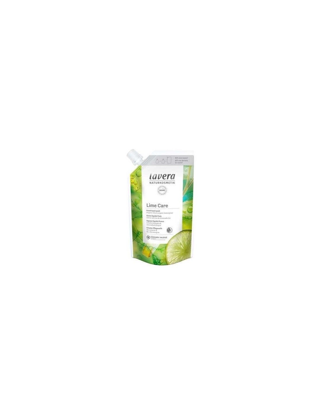 Recarga de 500 ml para 2 recargas de 250 ml. Limpieza suave de las manos sin resacarlas. Fórmula respetuosa con pH neutro para la piel. Aroma cítrico y fresco (notas salida lima, notas medias menta y eucaliptus y notas base geranio y sándalo). Fórmula biodegradable. Vegano.