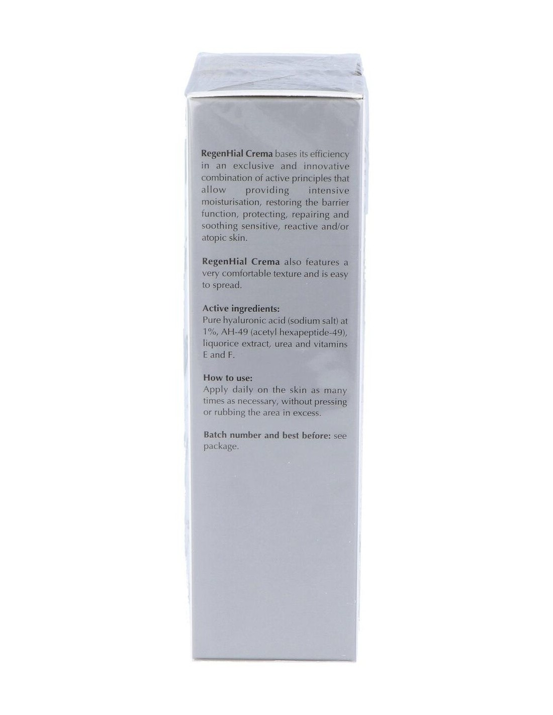 Crema de acción ultra hidratante formulada con ácido hialurónico, extracto del regaliz, urea y vitaminas E y F estabilizadas. Posee propiedades calmantes, reparadoras e hidratantes especial para pieles atópicas, irritadas, sensibles, inflamadas y reactivas. Favorece la regeneración celular y protege contra los radicales libres.