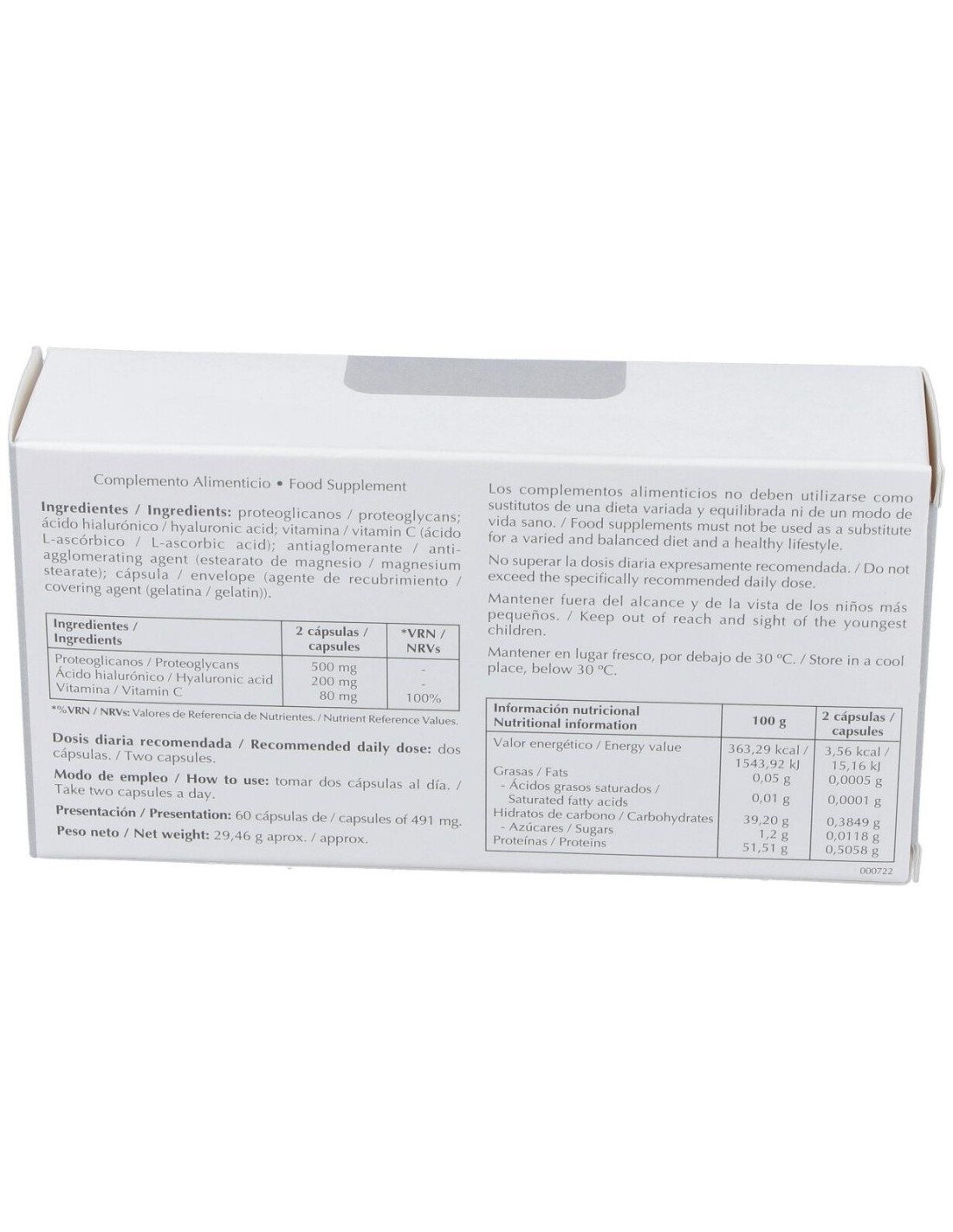 Producto que contribuye al mantenimiento de la matriz extracelular, la dermis y el cartílago articular, gracias a su combinación de activos como proteoglicanos y ácido hialurónico.
