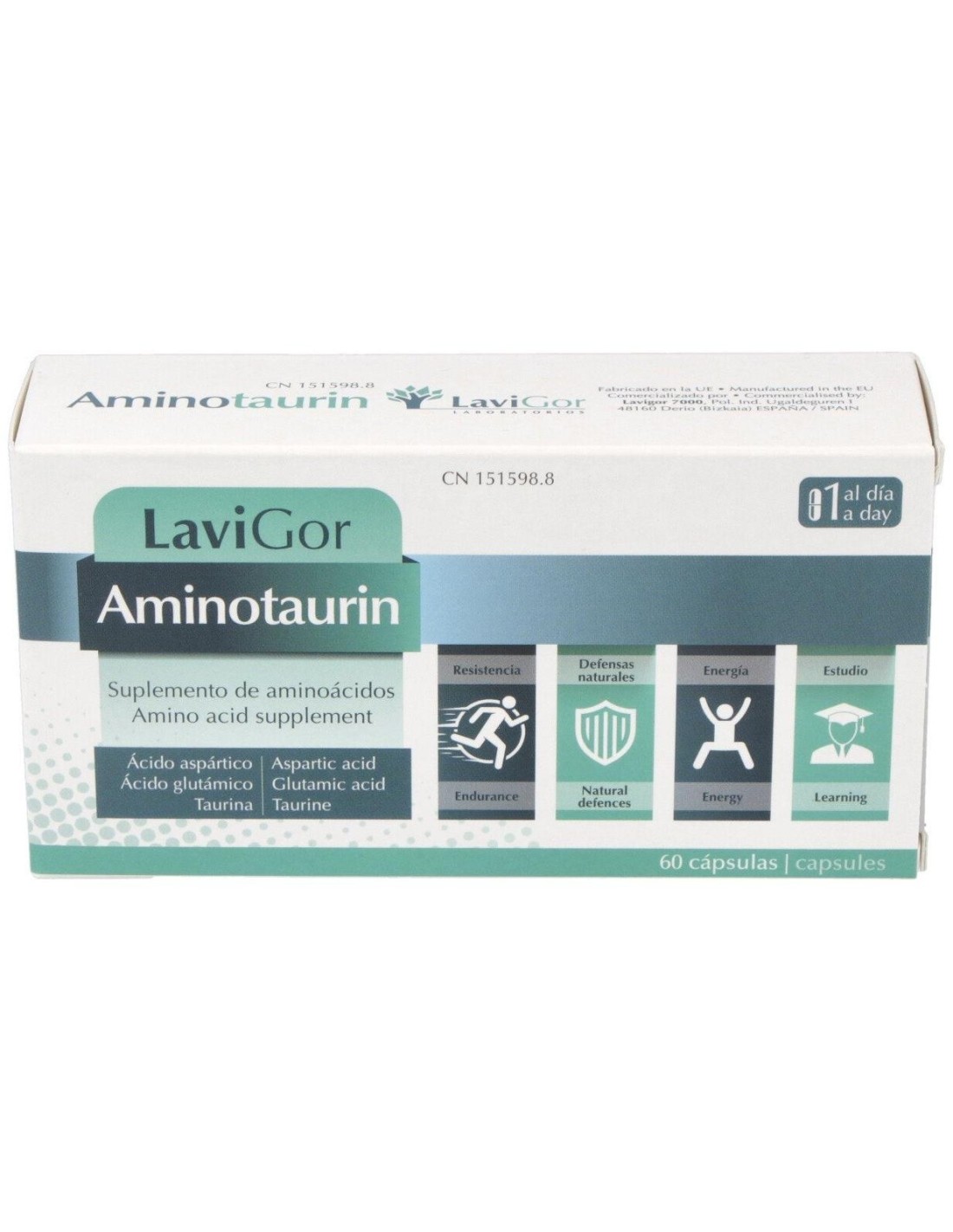 Complemento alimenticio a base de aminoácidos que constituyen una fuente de energía. AMINOTAURIN 60cap.