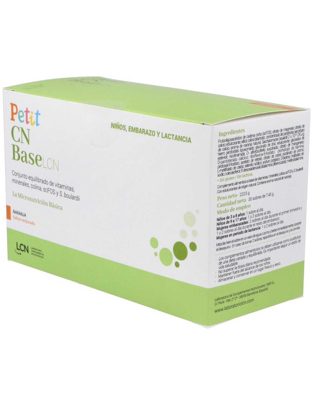 Petit Cn Base Sabor Naranja 30Sbrs. de Lcn es un suplemento diseñado para quienes buscan complementar su alimentación diaria con un producto de sabor agradable y presentación en sobres individuales. Es adecuado para personas que prefieren una opción práctica y fácil de consumir en cualquier momento del día.