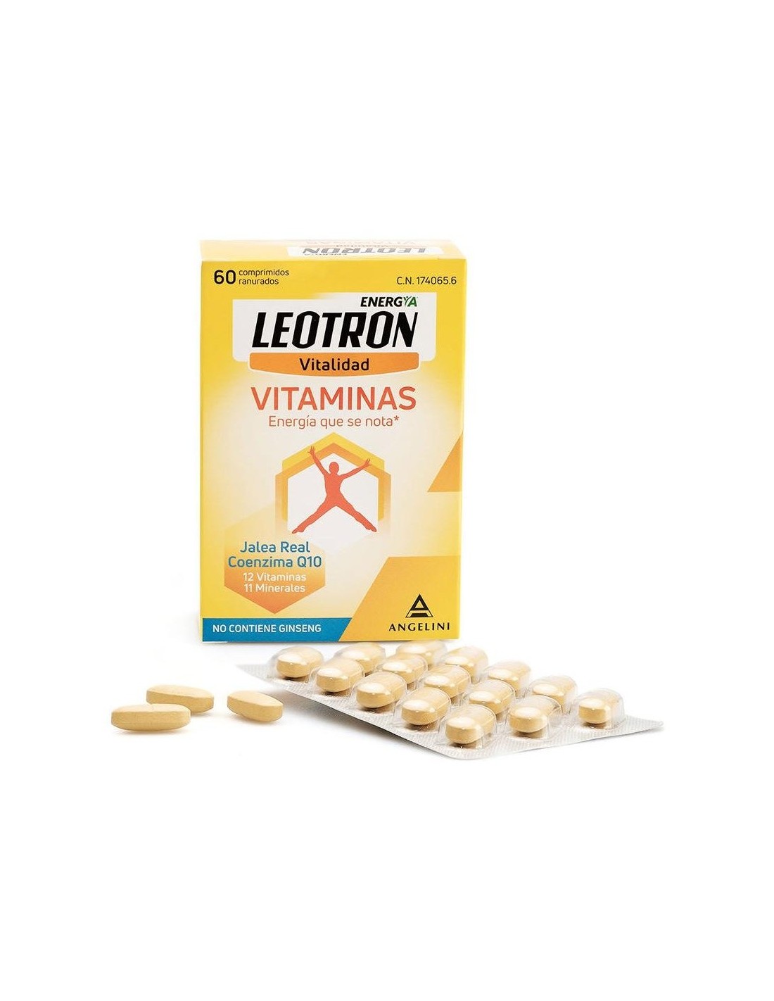 Complemeto a base de jalea real, Q10, 12 vitaminas y 11 minerales. Las vitaminas B2, B5, B6, B12, C, el magnesio y el hierro ayudan a disminuir el cansancio y la fatiga. El magnesio, yodo, calcio, hierro, fósforo y cobre ayudan al metabolismo energético normal. Para adultos y niños a partir de 12 años.