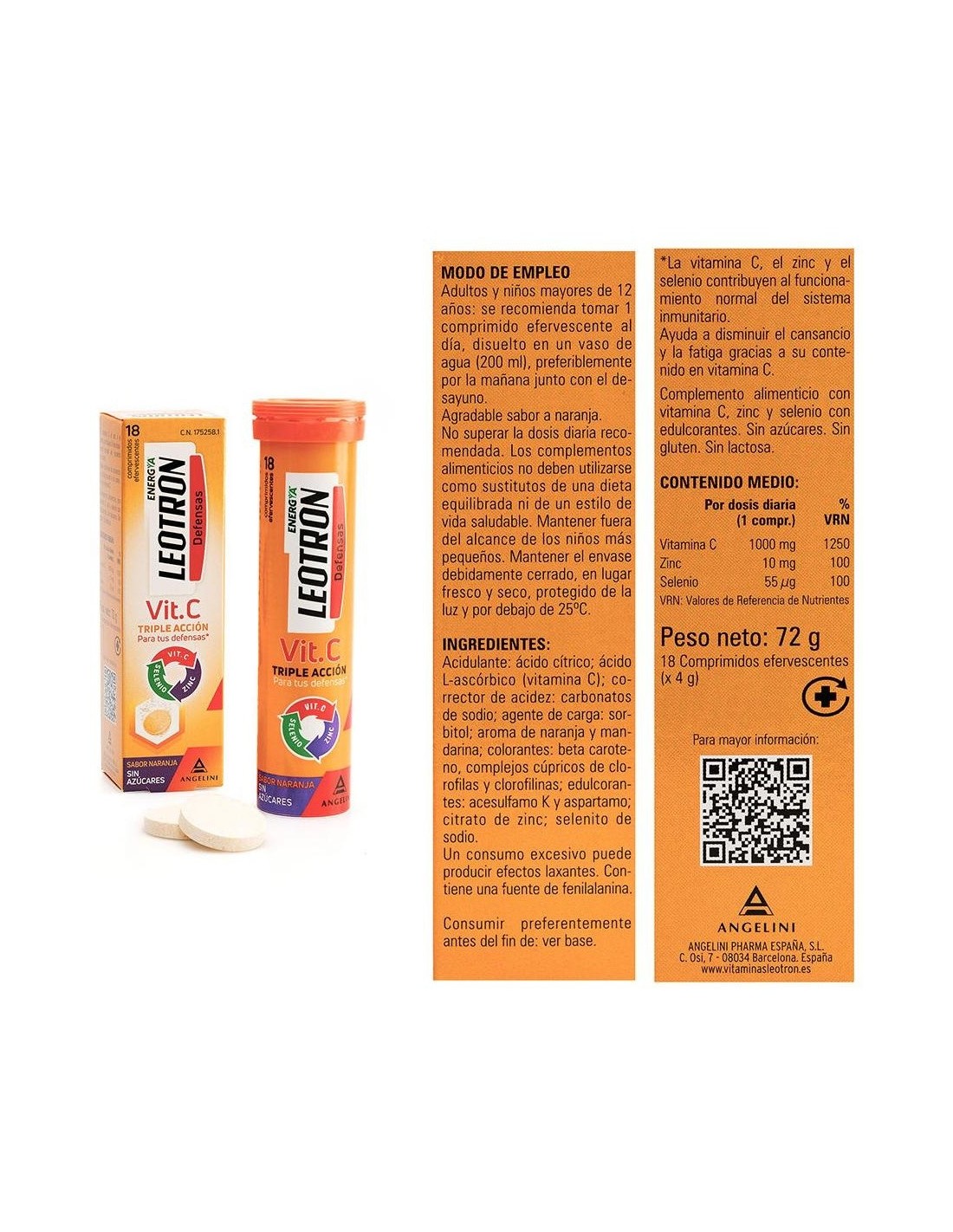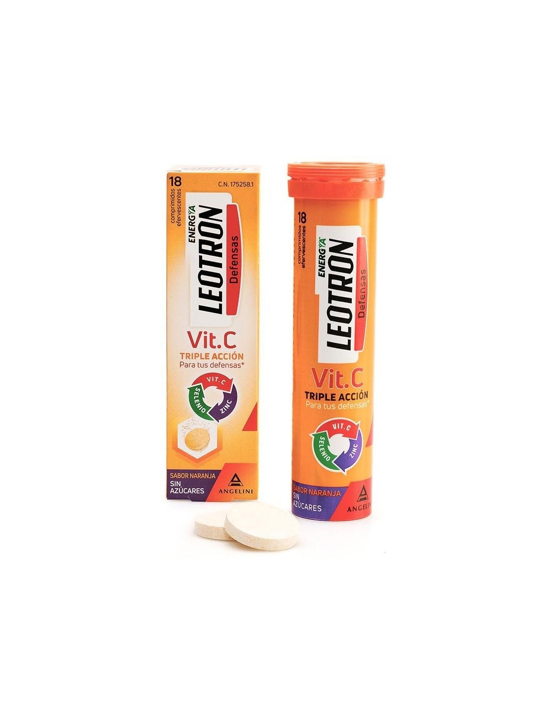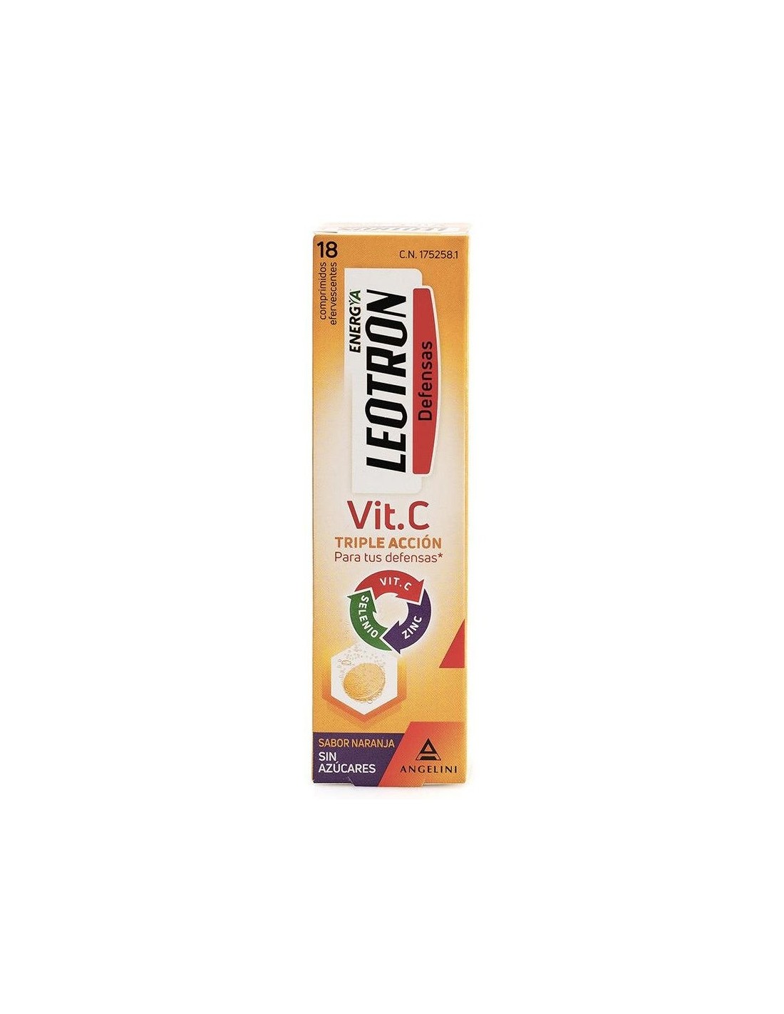 Comprimidos efervescentes de agradable sabor a naranja y sin azúcares con triple acción para las defensas: La vitamina C, el zinc y el selenio contribuyen al funcionamiento normal del sistema inmunitario y a la protección de las células frente al daño oxidativo. Para adultos y niños a partir de 12 años.