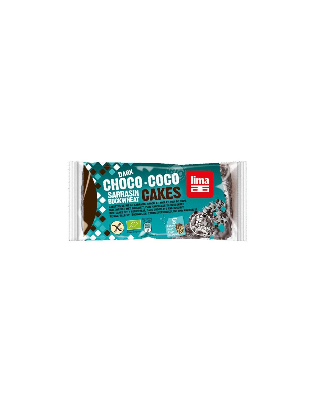Tortas Finas de Arroz, Sarraceno, Chocolate Negro y Coco 90 g Lima