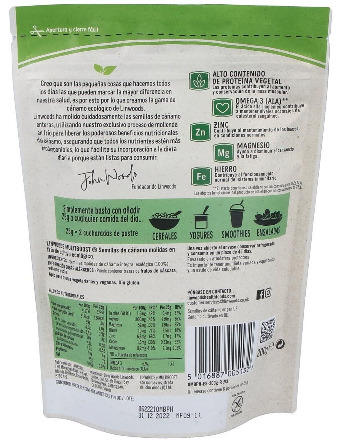 Semillas Molidas de Cáñamo Bio de Linwoods