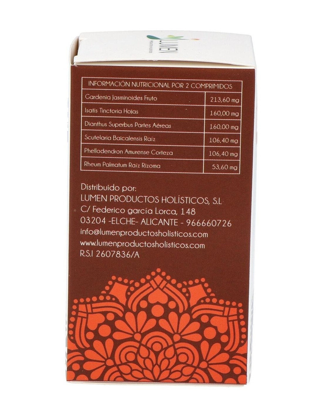 Gardenia Jasminoides (frutos), Coptis chinensis (rizoma), Lophatherum Gracile (herba), Scutellaria Baicalensis (raíz), Phellodendron amurense (córtex), Rheum palmatum (raíz y rizoma).