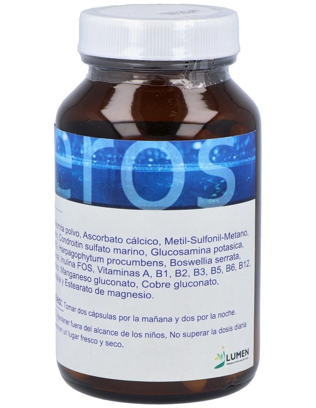 Fórmula a base de MSM, condroitina, glucosamina, boswellia, dolomita, con alto contenido en calcio y magnesio biodisponibles para ayudar el normal mantenimiento de los huesos.