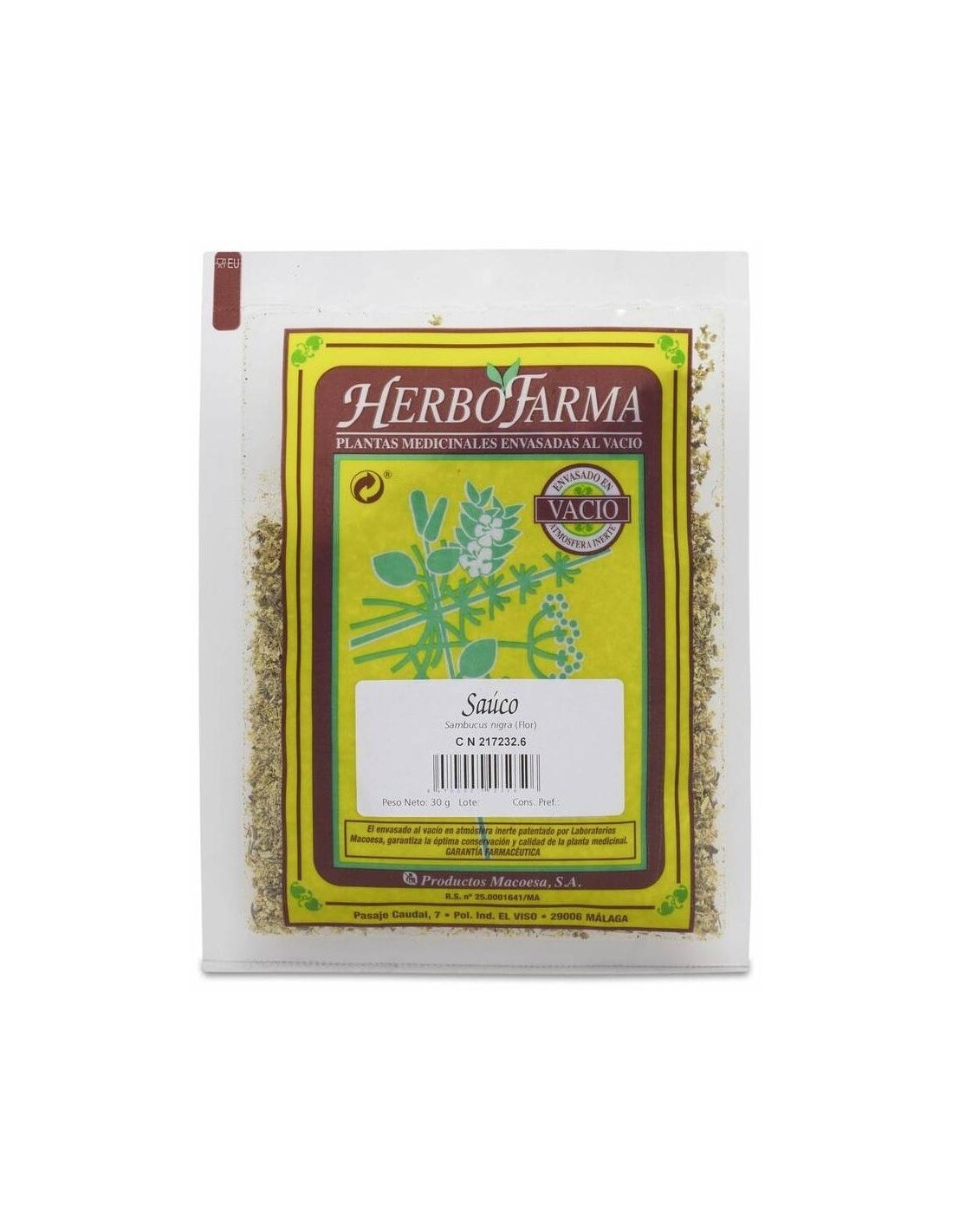 Saúco (flor) para infusión. Se le atribuye una acción diurética y sudorífica.