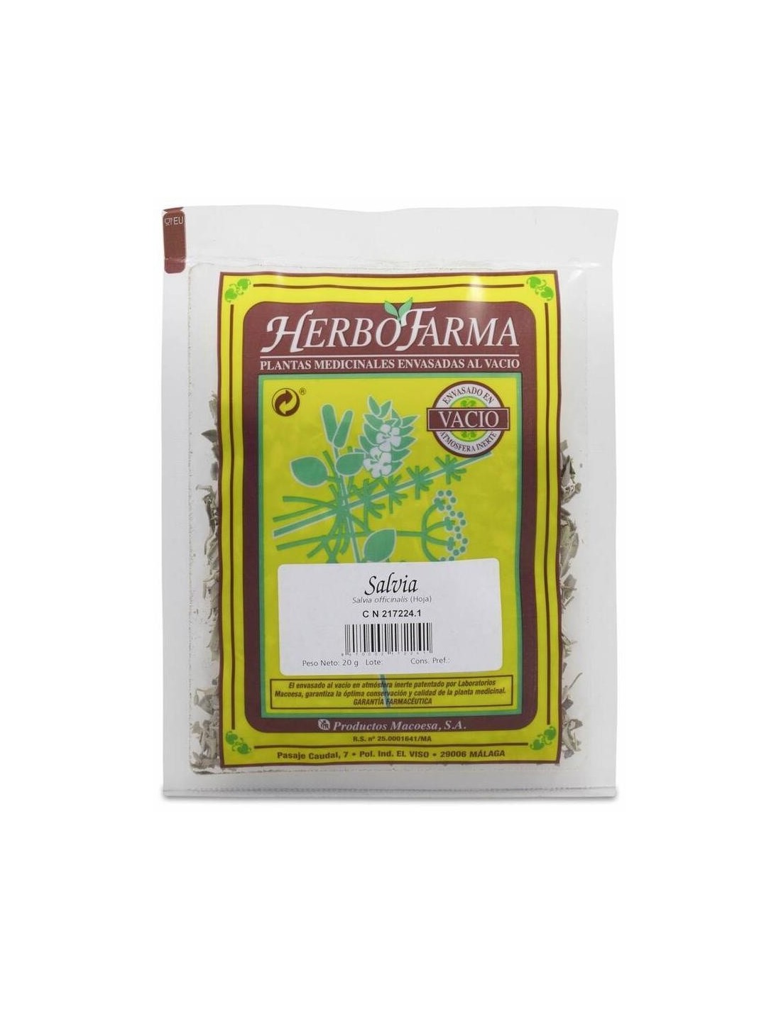 Salvia (hojas) para infusión. Tiene propiedades digestivas y acción antibacteriana, antiviral y antifúngica, por lo que se puede usar externamente como enjuague para la gingivitis o estomatitis.