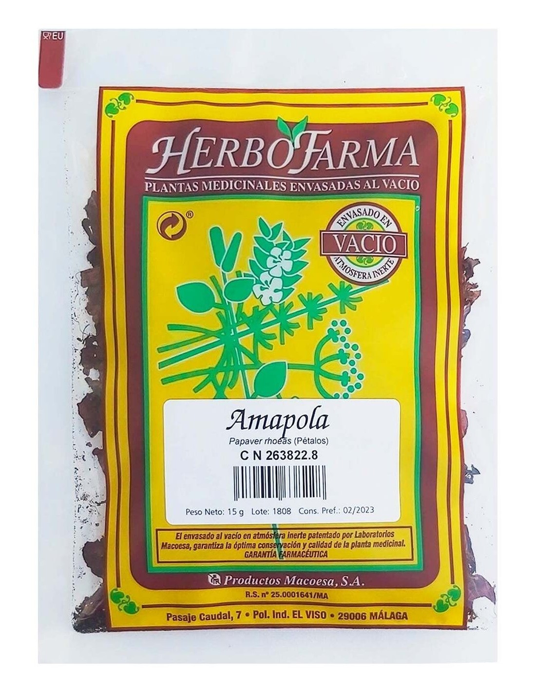 Amapola (pétalos) para infusión. Esta planta tiene asociadas tradicionalmente propiedades relajantes y antitusivas.